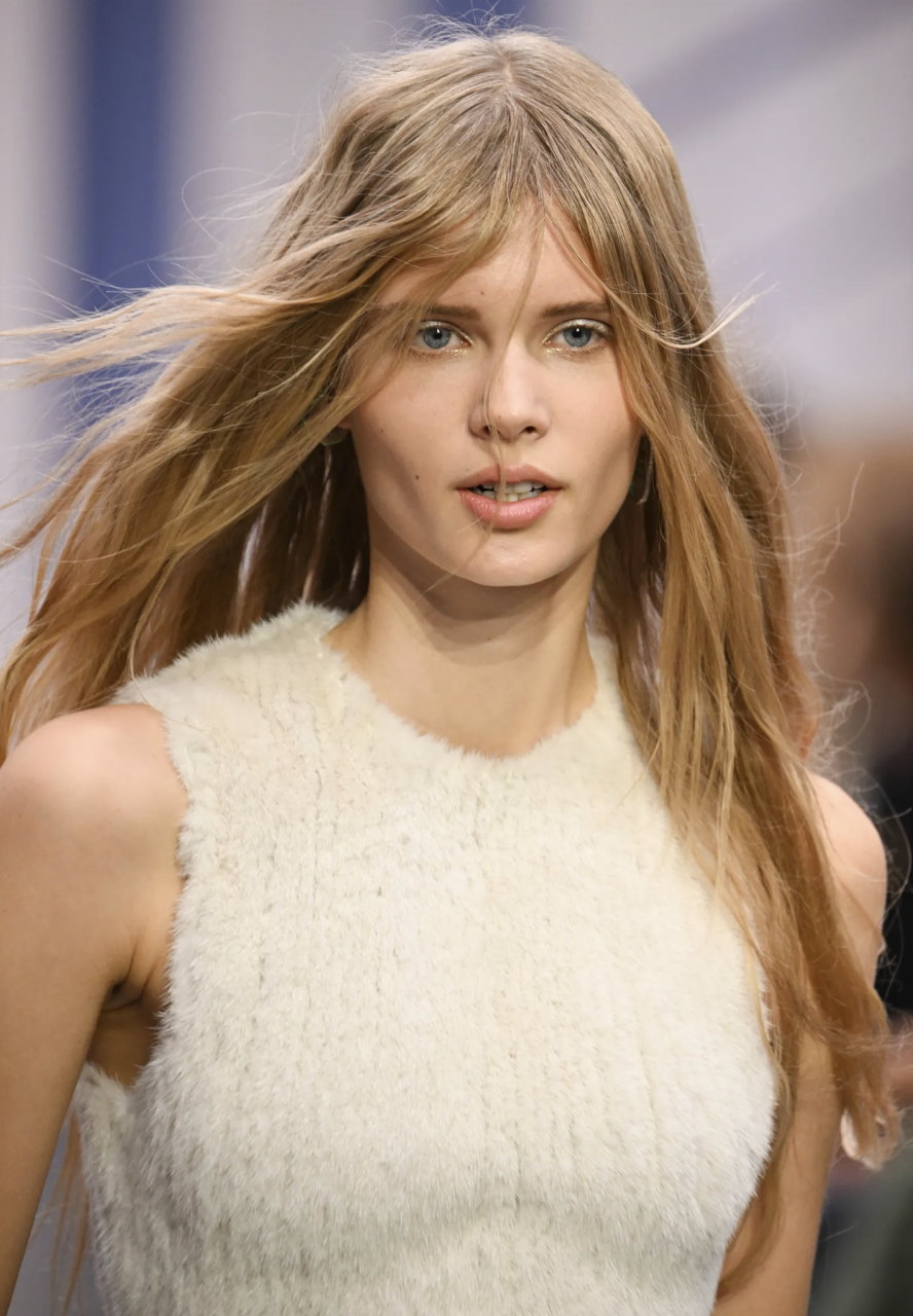 Fendi的低調髮型和化妝是對90年代grunge的致敬,髮型師Guido和化妝師Peter Philips對美容造型進行了精簡改造,以喚起下班後的時尚。從柔軟的中分,流向自然、有質感的波浪,到皮膚和眼睛上的一抹奶油銀色,這是一個我們可以接受的趨勢。