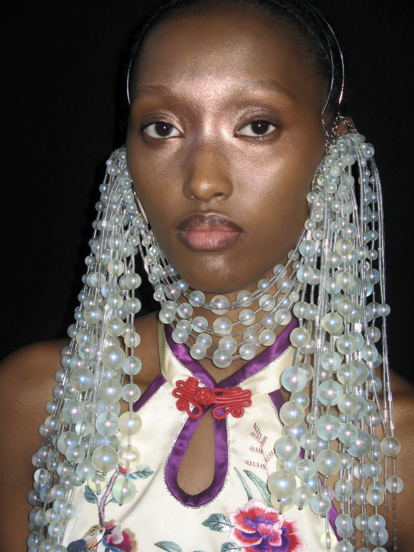 Gucci的2023年春夏雙子騷給了品牌全球化妝顧問Thomas De Kluyver一個大展技術的理由。他使用了一種「舊荷里活」閃光燈風格的光影粉,它不是塗在顴骨等傳統位置,而是「幾乎像一個反向高光」,光線從額頭和眼下位置影射出來。當模特兒走上天橋時,它創造了一種如手電筒的效果使她們的皮膚以一種閃亮、自然的方式被照亮。