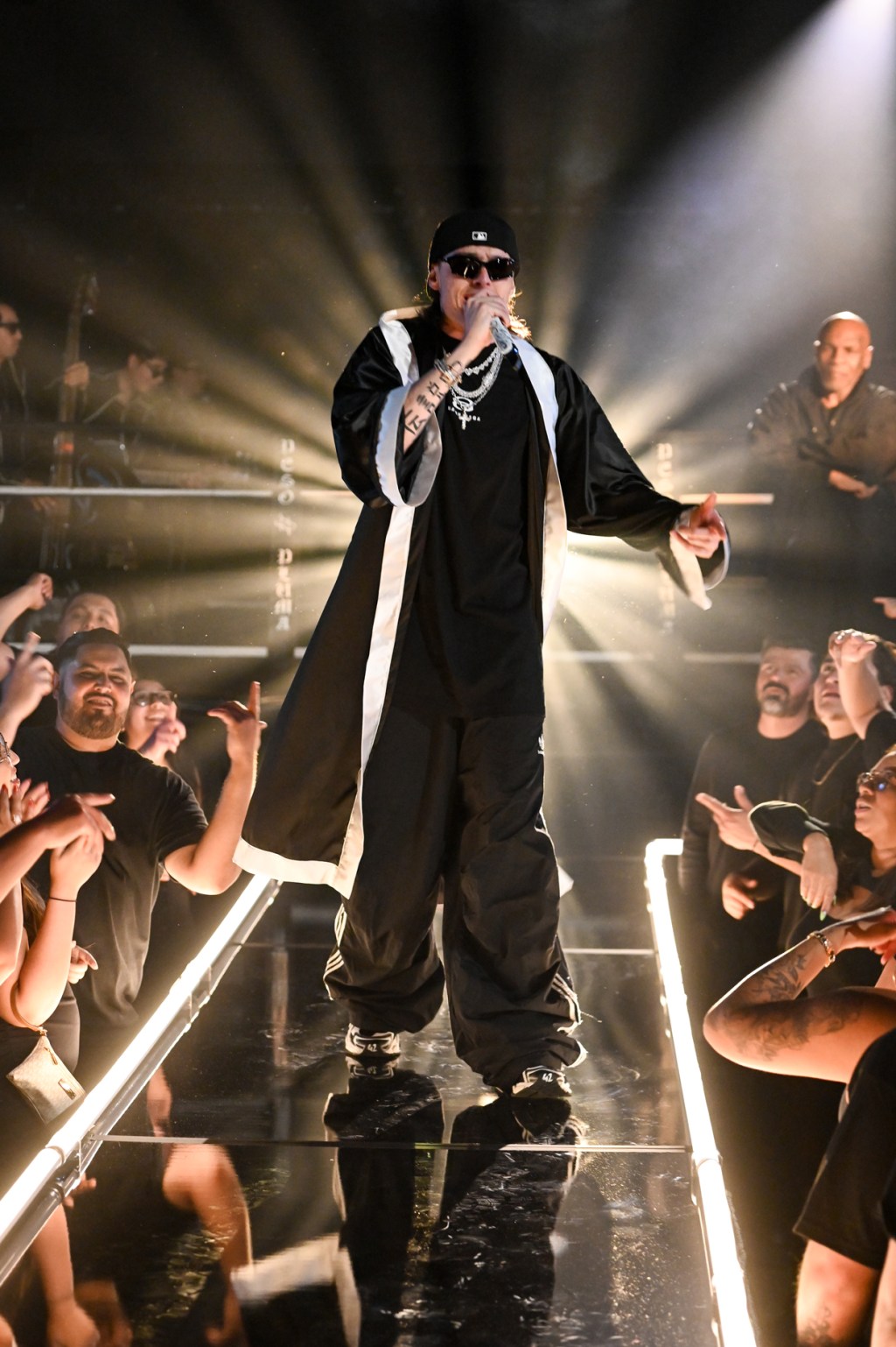 墨西哥藝術家Peso Pluma登台獻唱《RUBICON》,作為今年最耀眼的新人之一,他憑藉與Eslabon Armado合作的《Ella Baila Sola》獲得「Top Latin Song」大獎。