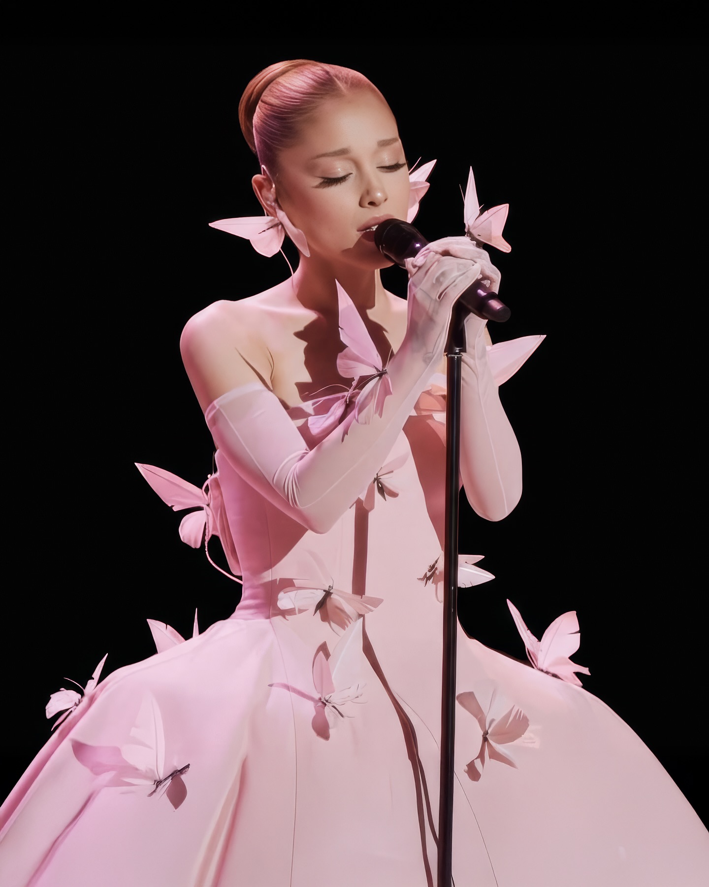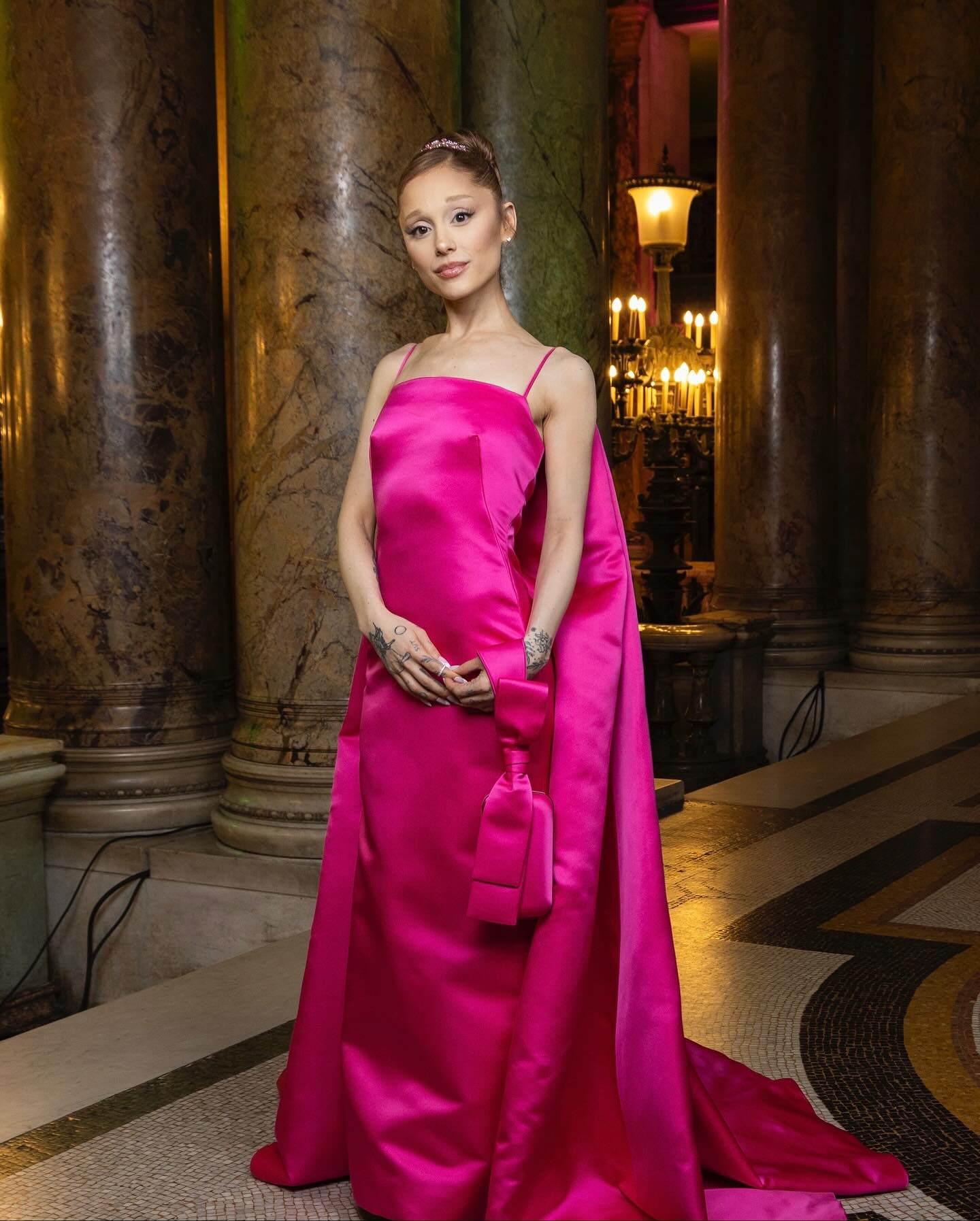 她在洛杉磯杜比劇院慶祝《魔法壞女巫:第二章》的特別音樂節目《魔法壞女巫:奇幻之夜》中,身穿由設計師Robert Wun定制的粉色蝴蝶禮服,舉手投足間散發著典雅的氛圍。她的髮型則打造為光滑的髮髻,展現出“Clean Girl”的風格。