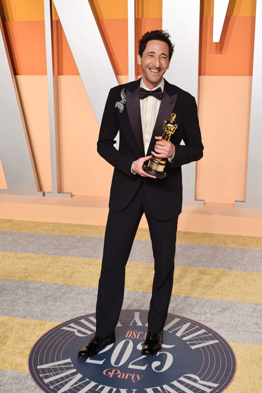 BEVERLY HILLS, CALIFORNIA - MARCH 02: Adrien Brody attends the 2025 Vanity Fair Oscar Party Hosted By Radhika Jones at Wallis Annenberg Center for the Performing Arts on March 02, 2025 in Beverly Hills, California. (Photo by Jamie McCarthy/WireImage)