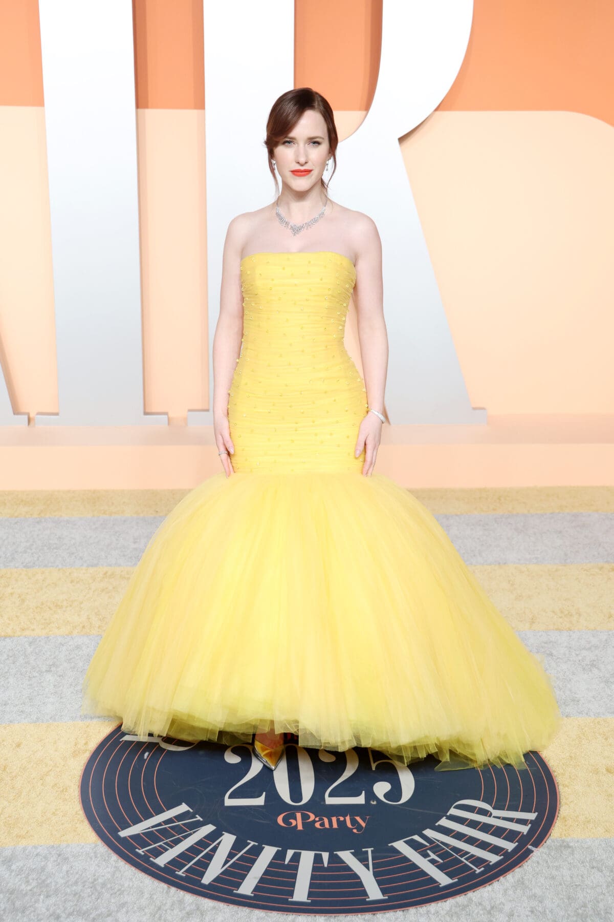 BEVERLY HILLS, CALIFORNIA - MARCH 02: Rachel Brosnahan attends the 2025 Vanity Fair Oscar Party Hosted By Radhika Jones at Wallis Annenberg Center for the Performing Arts on March 02, 2025 in Beverly Hills, California. (Photo by Daniele Venturelli/Getty Images)
