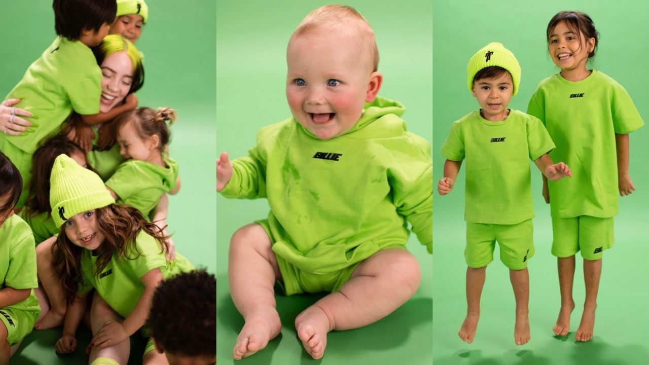在她釋出的童裝系列廣告花絮中,看著頭染螢光綠的Billie被一群穿著自家品牌螢光綠服飾的小朋友簇擁著,group hug實在是太可愛!