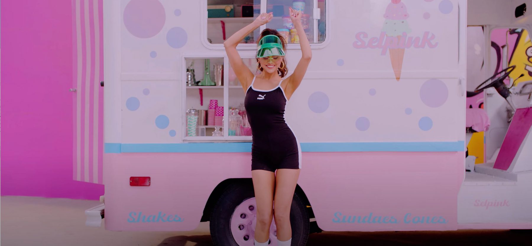 首先一定要說Selena Gomez作為雪糕車老闆的復古造型,一直擅長美式復古、鍾情五六十年代造型的她又回來了。無論是標誌貓眼妝容,俏皮的水手帽還有波點、條紋、格仔加上超級夏日的背景色彩,Selena彷彿與Blackpink置身同一個夢幻樂園。