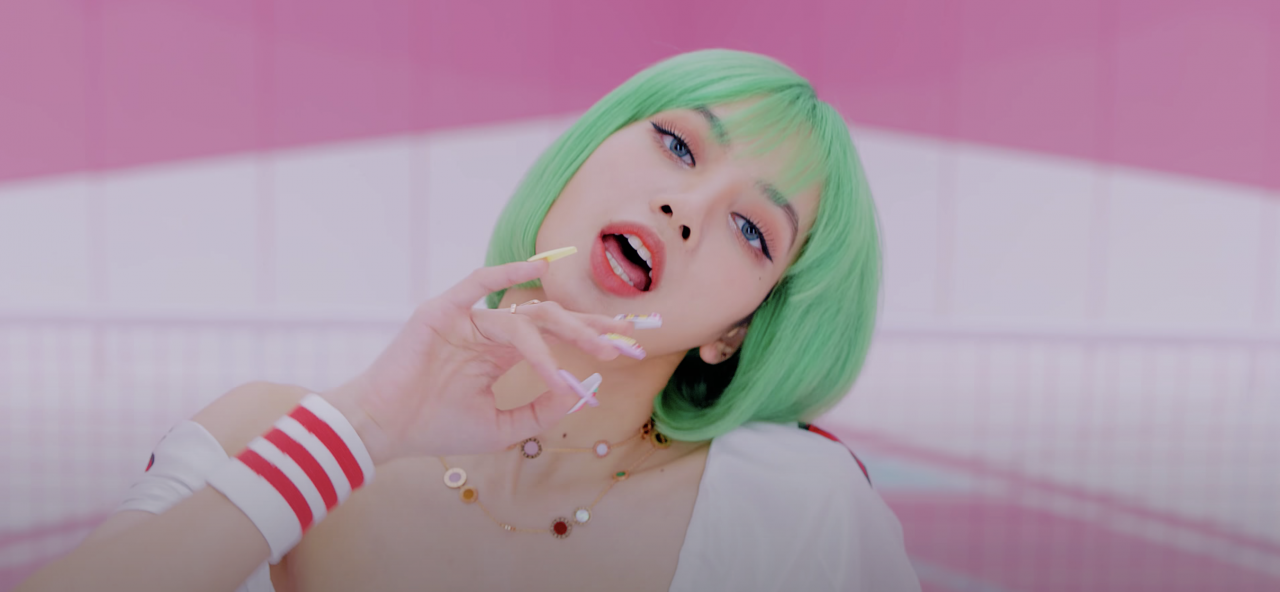來到Blackpink這邊,YG公司延續了一貫的”more is more”的造型策略,任何大膽的色彩和髮型都能被Jisoo、Lisa、Rose和Jennie完全駕馭。先來看看Blackpink四人合體的畫面,Jisoo美到不真實的臉蛋、Rose粉藍色頭髮撐全場、Lisa則是又酷又甜,超長黑髮到綠色假髮的瞬間轉換都能消化。還有Jennie的「粉紅雙馬尾」更被人稱作「粉色ending妖精」。