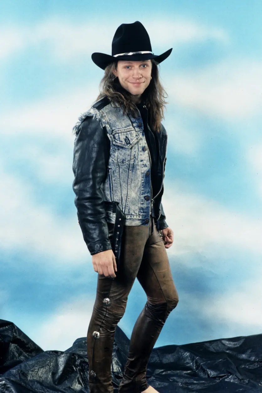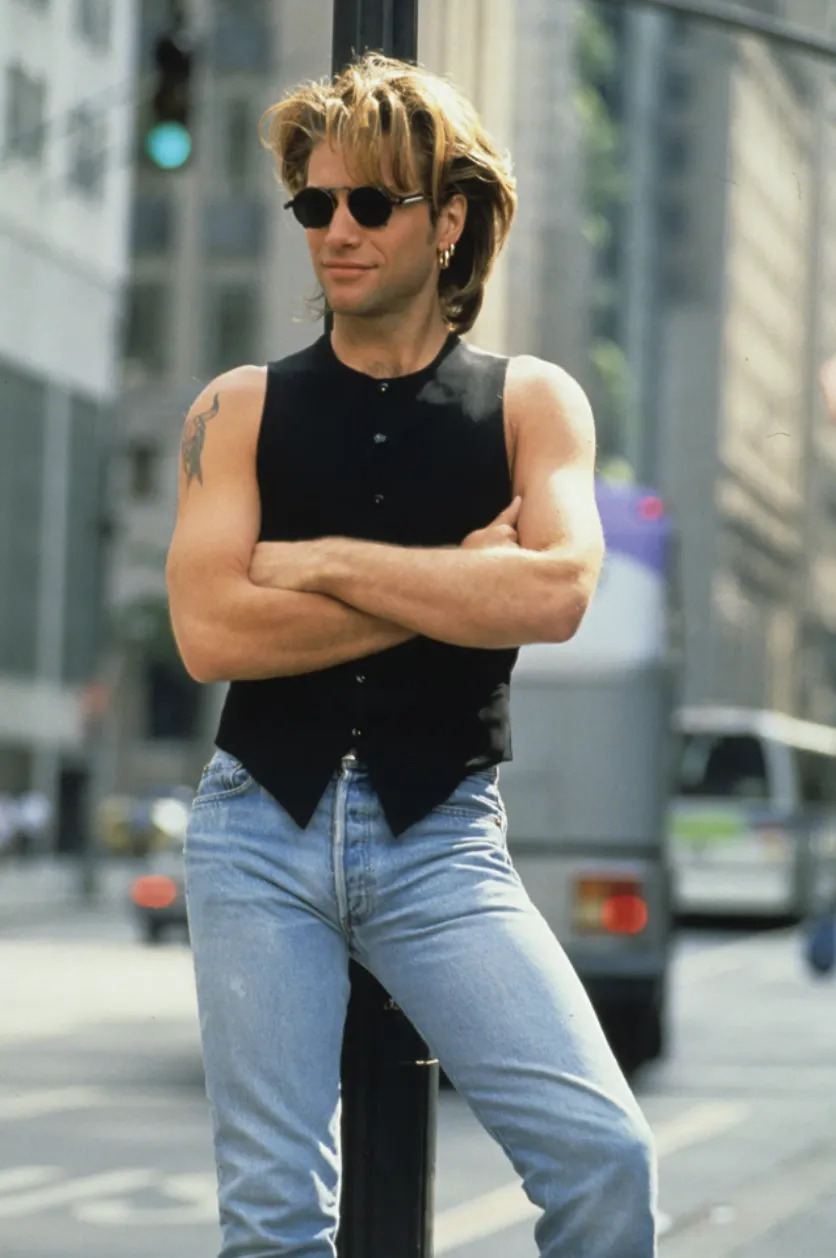 由真正的美洲原住民部落製作的正宗西部服飾是 Jon Bon Jovi 80 年代和 90 年代的關鍵單品,畢竟他們那時創作了電影 Young Guns 的配樂。Concho 銀飾腰帶、動物造型手鐲、綠松石戒指、手鐲和項鍊。只要它們是來自 Portobello 路上的 Jesse Western 商店的正品,絕對都是必備時尚單品。