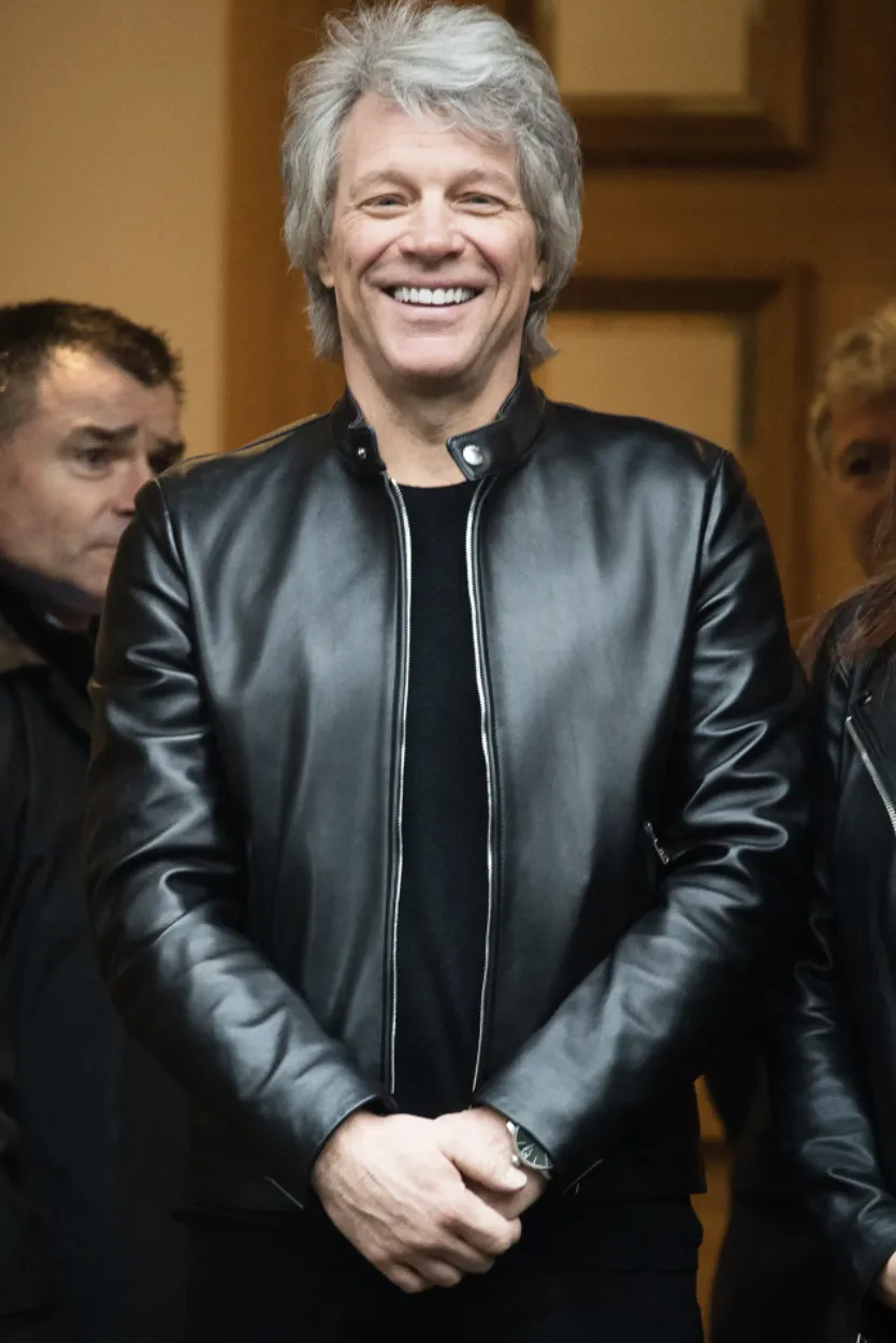 Jon Bon Jovi 的造型近年來自然的沈穩許多,變得更加優雅,而關鍵就是一件簡單的拉鍊皮夾克,由 John Varvatos 所設計,他是一位專門製作奢華搖滾氛圍的設計師,就像 Ralph Lauren 專門設計學院風一樣。