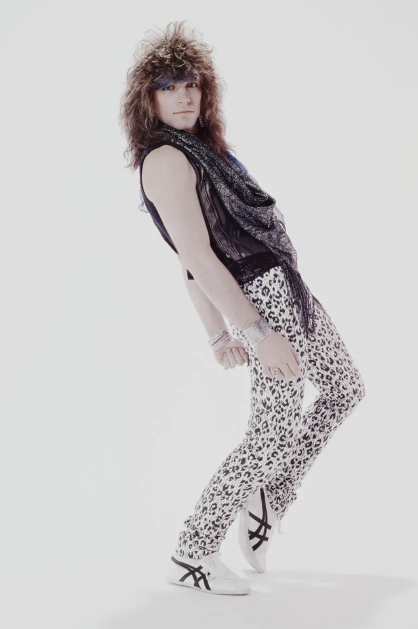 一部份的他是一隻華麗的搖滾孔雀,一部份的他是 Tom of Finland 筆下的牛仔男孩(雖然更瘦了一些), 就像一大塊野營地,沒有人穿著衣服,並留著跟 Bon Jovi 一樣的髮型。