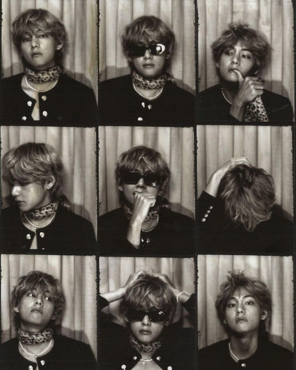 平常只是到街上走走或者買外賣,V也有自己一套美學,他曾穿上運動風黑色拉鍊高領外套,加上羽絨帽和放在帽子上的粗框太陽眼鏡,衣服上的白線勾勒出袖子輪廓。低調又有個性。比較輕便的穿搭,可以選擇套頭衛衣,乾淨俐落又適合戶外互動。當然,黑色也能成為優雅穿搭的靈魂,例如V以一頭金髮襯上一件黑色禮服,中心華麗的金色鈕扣跟頭髮互相呼應,而且他帶著的珍珠項鍊頓時為穿搭增添幾分貴氣,中性的性感魅力滿分!如果鍾情黑白穿搭的讀者們,一件恤衫加黑西褲,只要剪裁選擇正確,就能改變一個人的氣質。若你喜歡合身一點,整個人的氣息就會更成熟穩重,若像V這樣穿比較寬鬆和垂墜感重一點的版型,就會顯得頹廢和叛逆一些。