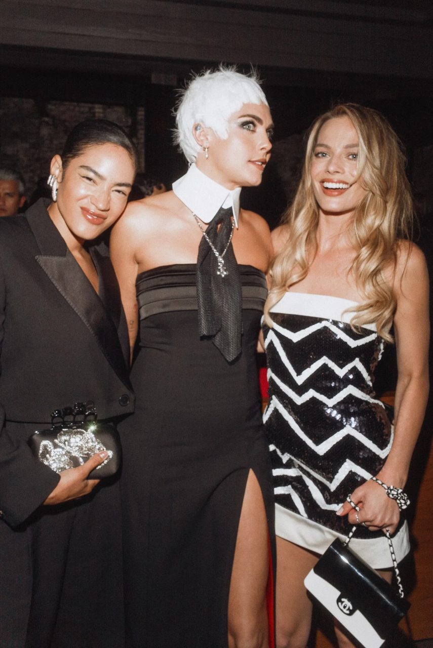 Kendall JennerKylie Jenner 姐妹前後腳出門前往 Met Gala 夜晚的派對,Kendall 一身 Nensi Dojaka 透視亮片緊身衣,以 1994年 Chanel 春夏系列為靈感,在她旁邊則是正與其傳緋聞的波多黎各歌手Bad Bunny ; Kylie Jenner 則以Haider Ackermann 禮服配襯黑色皮革手套,與設計師齊齊現身;Margot Robbie 以非常時髦的Chanel黑白露肩小禮裙裝束到場。可以看到,不少名人以透視「Boudoir」復古風格造型,結合致敬 Karl Lagerfel 個人風格符號的配飾,及在品牌設計所喜愛的黑白色及珍珠、柯根紗、山茶花配飾元素作配搭,繼續發揮 Met Gala 主題的時尚魅力!