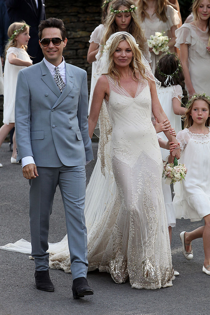 很多人認為傳統婚紗都是白色,據說可以追溯至1840年英國維多利亞女皇的婚禮,當年女皇穿上拖尾長達 18呎的白色婚紗,官方照片被廣泛刊登之後,一直成為很多女士心目中最佳的婚紗色調,同時賦予純真、純潔的正面意思。不少時尚女星如「宇宙博主」Chiara Ferragni 穿上由 Dior 女裝創意總監親自設計的 Maria Grazia Chiuri 白色婚紗、Kim Kardashian 則以 Givenchy by Riccardo Tisci 白色婚紗展現美好身段:超模 Kate Moss 找來好友 John Galliano 設計無袖婚紗,曾在 V&A Museum展出,堪稱時尚經典。