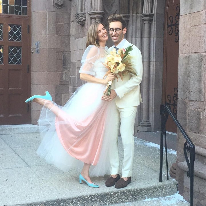 這位新娘穿上 Molly Goddard,與Joel McAndrew於2016年在紐約布魯克林結婚時,該模特為她的薄紗禮服和綠松石綠松石 Manolo Blahnik 高跟鞋增添了一抹亮色。