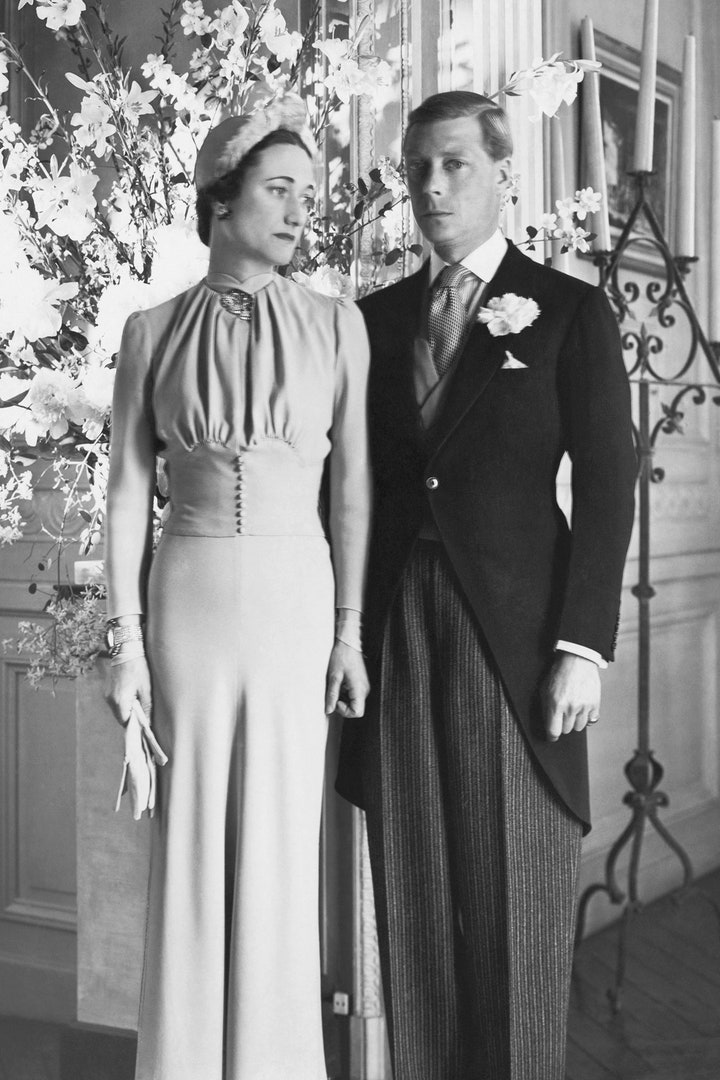 1936年,當時愛德華八世國王為了與 Wallis Simpson 結婚而退位,她成為世界上談論最多的女性之一。 1937兩人在法國結婚,她的婚紗同樣出名,是由Mainbocher設計的,有一抹「Wallis blue」,這個藍色調與她的眼睛相匹配。