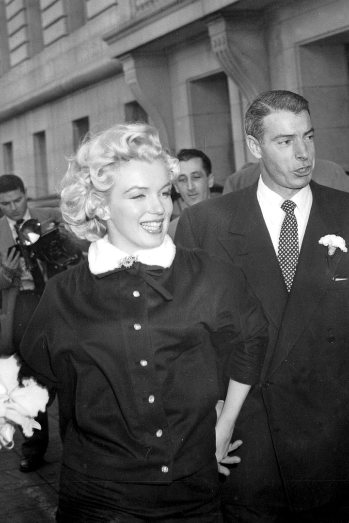 1954年,荷李活巨星夢露與棒球明星 Joe DiMaggio 結婚時,她穿上一件棕色連衣裙搭配同色系翻領外套。