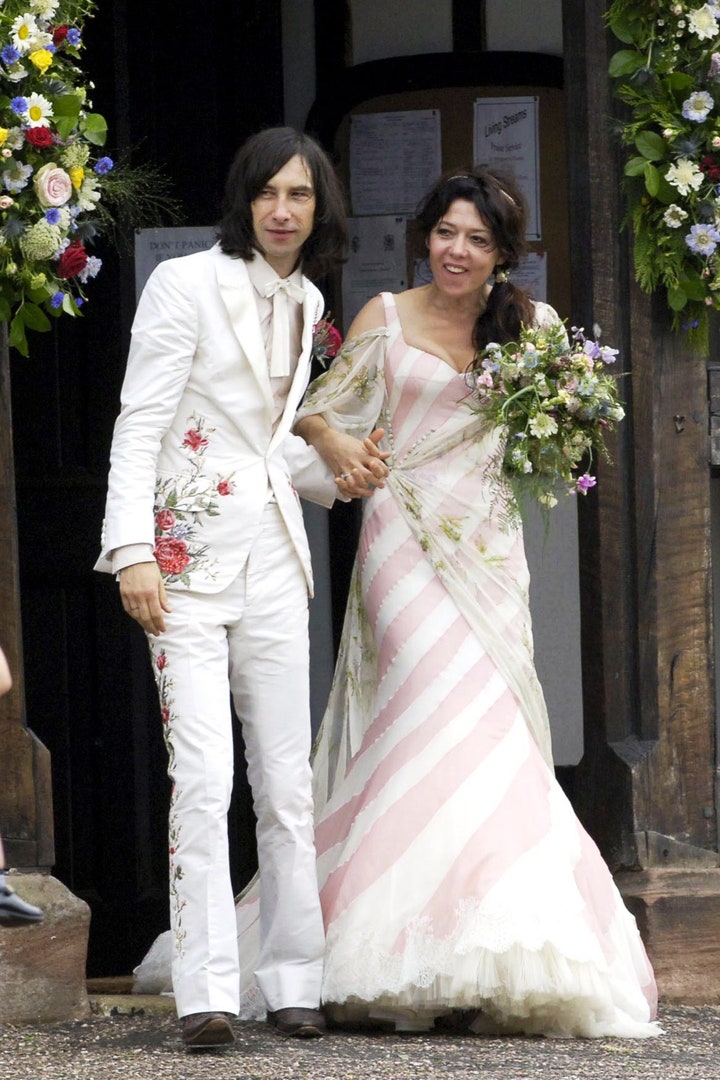 這位造型師(Kate Moss 的BFF)在2006年與Primal Scream的Bobby Gillespie結婚時,選擇了粉白色斜間條紋的禮裙。