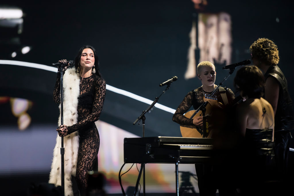 Dua Lipa在演出尾聲大唱熱門歌曲《Don’t Start Now》,她身穿一套改版的Chanel 黑色Bodysuit,散發奢華氣息。