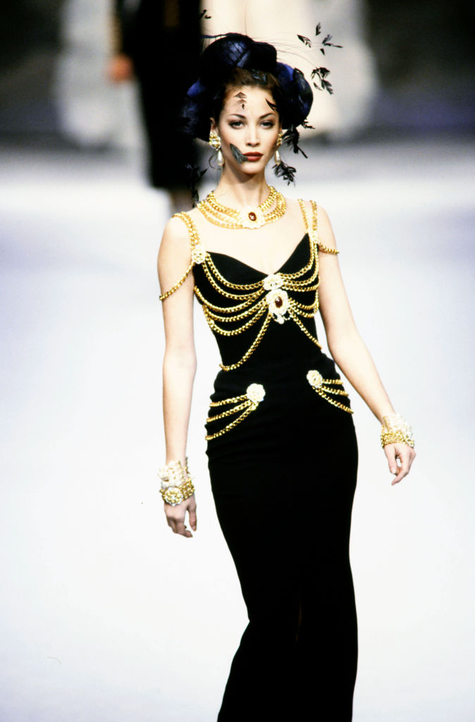 這套Bodysuit原版為一條連身裙,來自Chanel 1992年春季高訂時裝展,當時由超模Christy Turlington穿著走秀,成為她模特生涯中的經典時刻。Dua Lipa身穿的改版Bodysuit同樣飾有垂墜的金色鏈條,為她的舞姿增添動感。