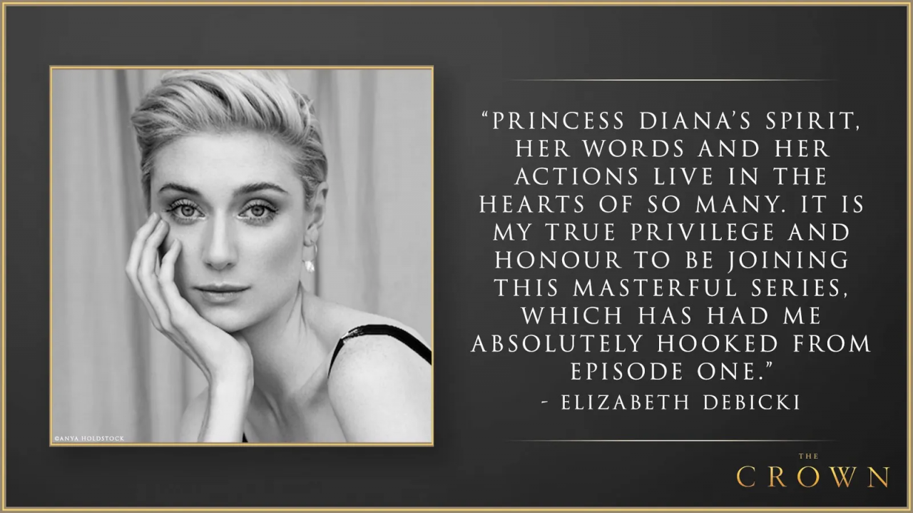 不同於之前戴安娜王妃的扮演者總是有各種反對的聲音,當時Elizabeth Debicki 的官宣神奇般地引起大家的一陣好評。
