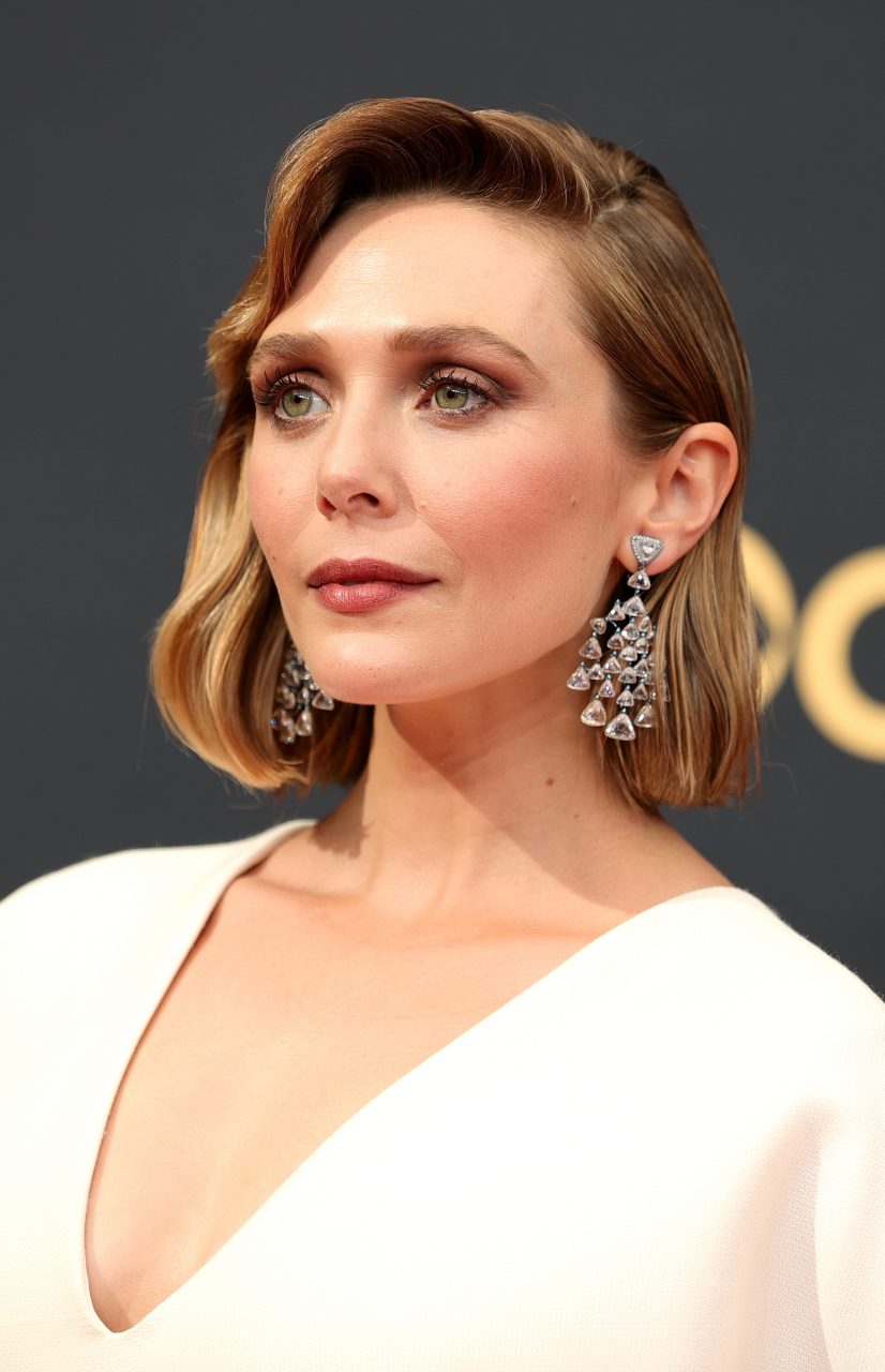 2021年9月19日,美國女演員 Elizabeth Olsen 身穿 The Row 連身裙,佩戴 Chopard 珠寶亮相第73屆艾美獎。