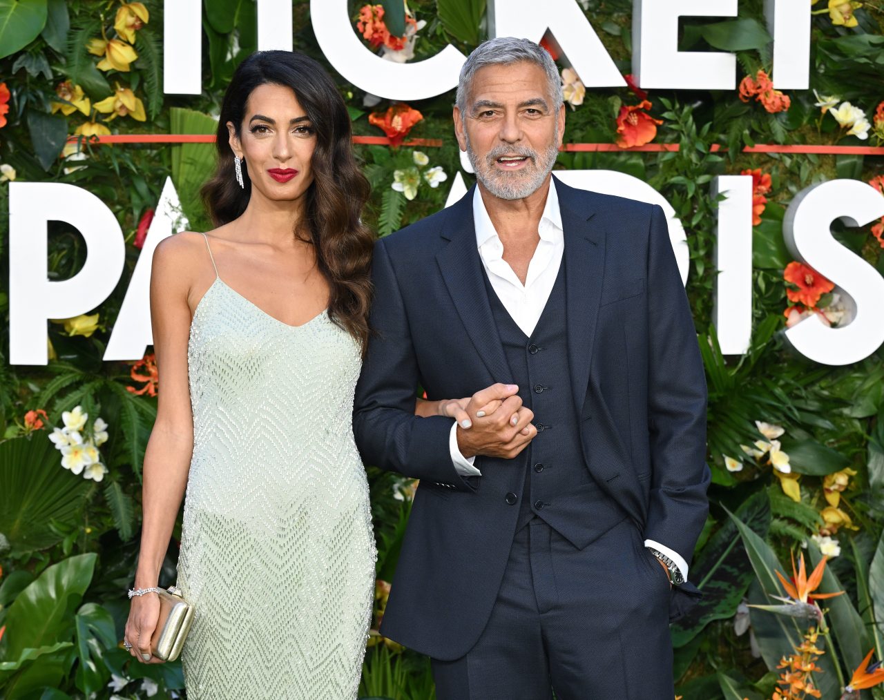 LONDON, ENGLAND - SEPTEMBER 07: George Clooney and Amal Clooney attend the "Ticket To Paradise" World Premiere at Odeon Luxe Leicester Square on September 07, 2022 in London, England. (Photo by Karwai Tang/WireImage)
