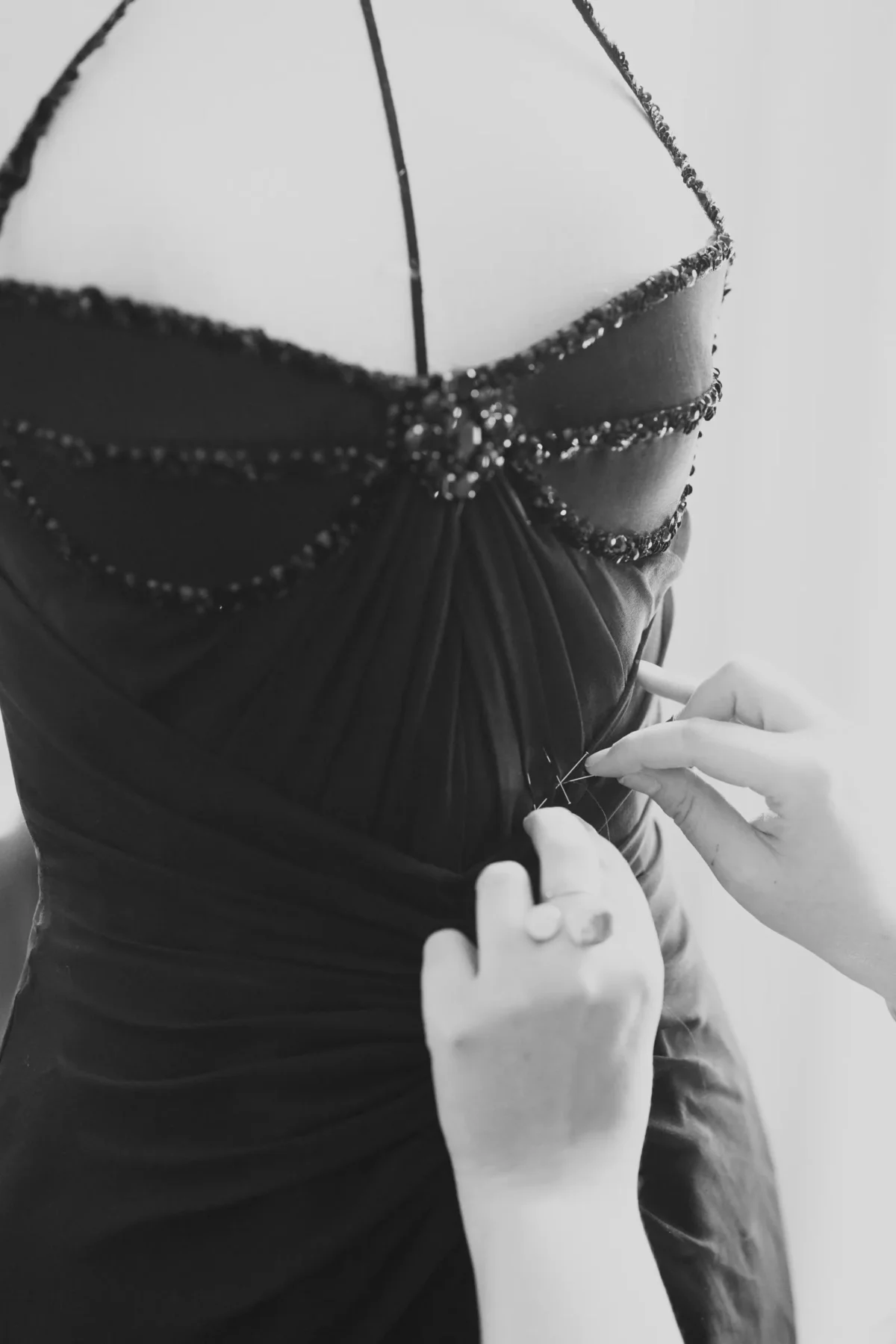 Paul Mescal選擇了一套俐落的黑色西裝亮相,而Gracie Abrams則以一身引人注目的時尚造型搶盡風頭:她穿着Chanel量身訂製的黑色緞面縐紗禮服,層疊的雪紡布料垂墜而下,背面點綴了黑色水晶和珠寶鈕扣。這件禮服的製作耗時456小時,並擁有超過19,000種不同的刺繡元素。這套造型與Paul Mescal的西裝意外(或許也不那麼意外)地相襯。