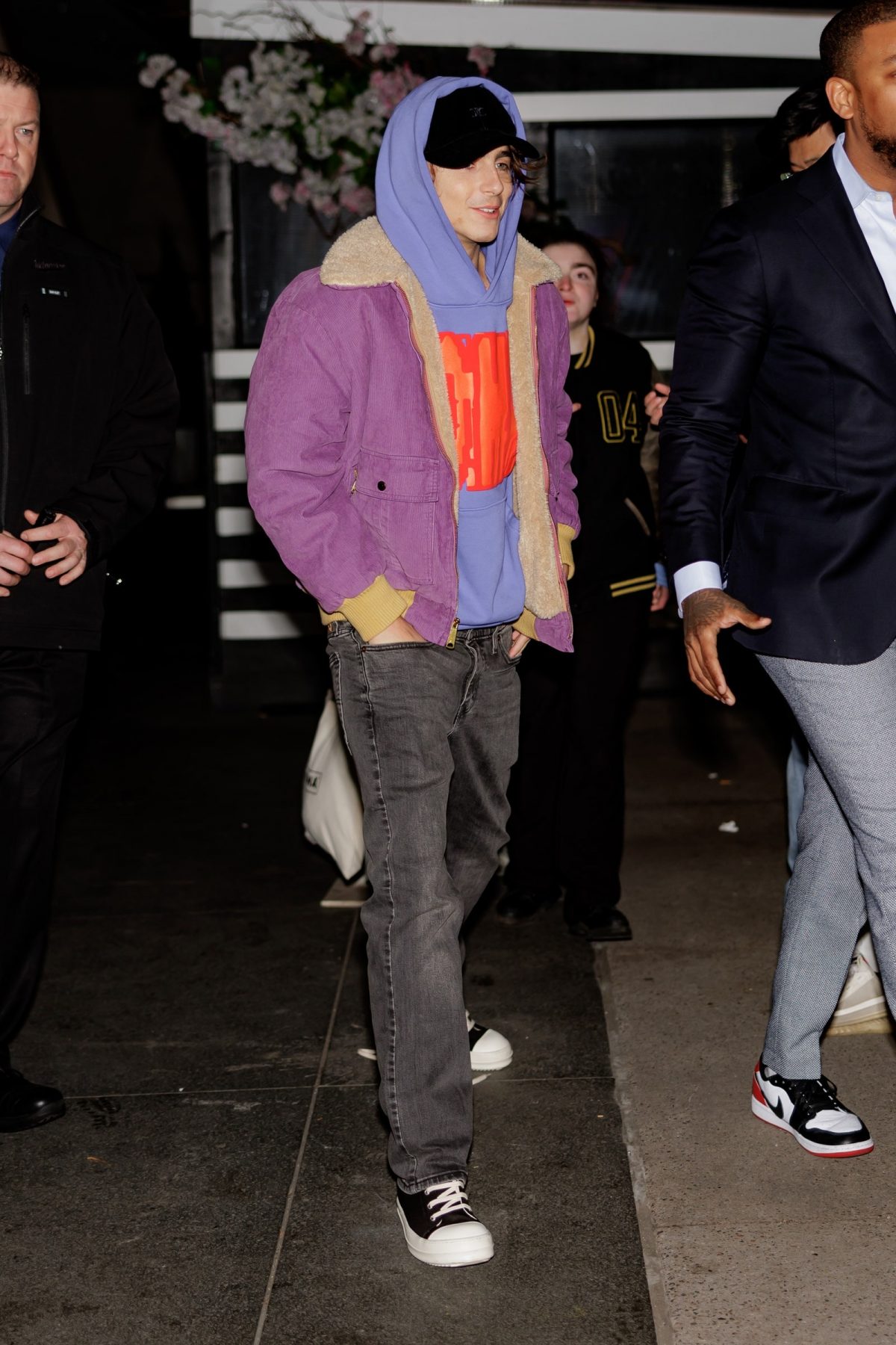 Kylie Jenner 延續了她一貫的時尚風格,全黑的造型讓人眼前一亮——穿著露肩迷你裙,搭配閃亮緊身褲和黑色細帶高跟鞋。 Timothée Chalamet則是更運動、更色彩的裝束,身穿紫色拉鍊外套,內搭一件撞色連帽衫和灰色牛仔褲。