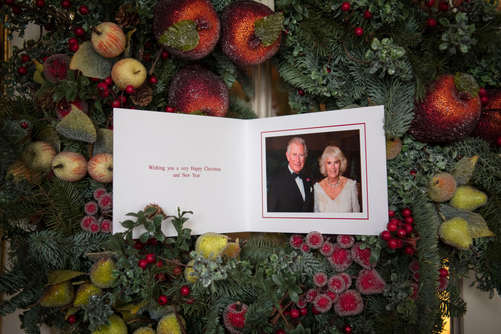 LONDON, ENGLAND -DECEMBER 15: Prince Charles, Prince of Wales and Camilla, Duchess of Cornwall's 2017 Christmas card pictured in Clarence House on December 15, 2017 in London, England. The picture on the card was taken by Hugo Burnand showing the royal couple in the Orchard Room during the private 70th birthday party of The Duchess of Cornwall at Highgrove on Saturday 15th July 2017. (Photo by Victoria Jones - WPA Pool/Getty Images)