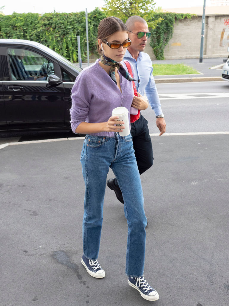 而到了2020年,Kaia Gerber 在其一系列的 off-duty 造型中都選擇戴上具有90年代標誌的太陽眼鏡。當中包括Chanel 鏡面款式、長方形鏡框、橙色鏡面以及經典的方形鏡框,可保護她免受洛杉磯猛烈的陽光。