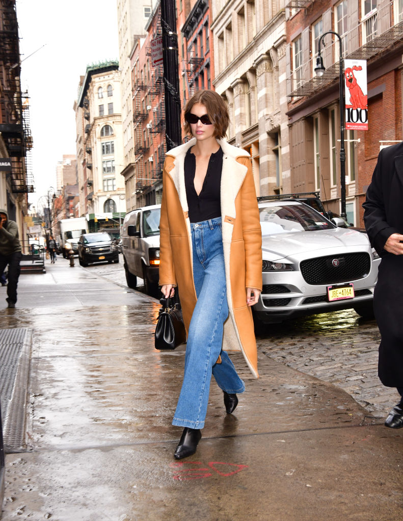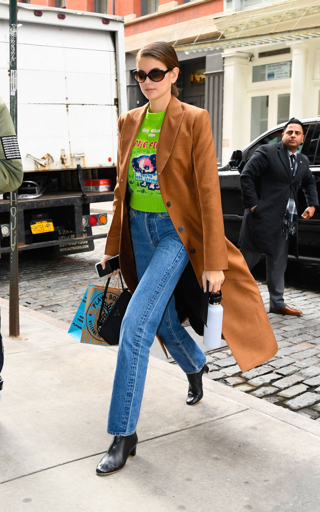 像每位年輕的超級名模一樣,Kaia Gerber 亦是90年代太陽眼鏡的粉絲。 綜觀近年太陽眼鏡的潮流,微型鏡框確實佔據上風,從 Rihanna 到 Kendall Jenner ,每個人都戴上這種細小的太陽眼鏡,讓人聯想起十年前的邪教 cult 電影中的場景,例如《22世紀殺人網絡》(The Matrix)和《搏擊會》(Fight Club)。 而回到90年代,Kaia 的名模母親 Cindy Crawford 偏愛 oversized 眼鏡,而 Jennifer Aniston、Madonna 和 Britney Spears 則偏愛小巧的鏡架。 誰能忘記在1999年的奧斯卡頒獎典禮上,Celine Dion 在她的 Dior 燕尾服外套(前後調轉穿)和淺頂軟呢帽上戴上的太陽眼鏡?