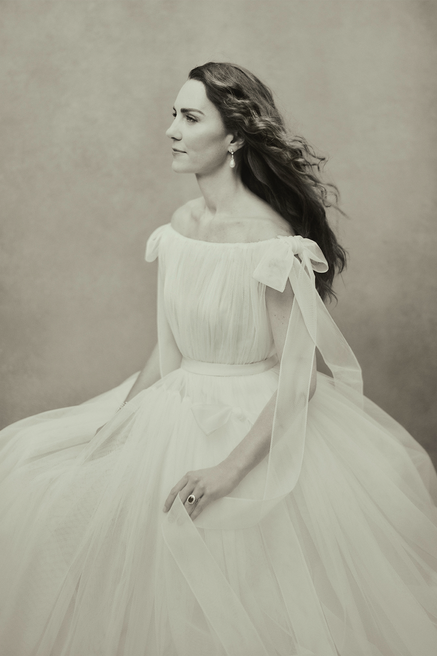 此外,凱特當天配戴的珍珠耳環則是為了紀念戴安娜王妃——曾經的「威爾斯王妃」,「威爾斯王妃」也是凱特在 9 月 8 日女王去世後受封的新頭銜,象徵凱特將把戴安娜王妃的精神傳承下去。這珍珠耳環最初是 1981 年戴安娜與查理斯王子結婚時,英國珠寶商 Collingwood 所送給她的結婚禮物,後來這耳環便成為戴安娜王妃的最愛,經常拿來搭配瑪麗女王的「劍橋情人結皇冠」(Lover’s Knot Tiara)。多年來,劍橋公爵夫人在白金漢宮的許多國宴上都戴著這款耳環,在《Vogue》攝影師 Paolo Roversi 拍攝的她 40 歲生日照片中,也正戴著這款耳環亮相。