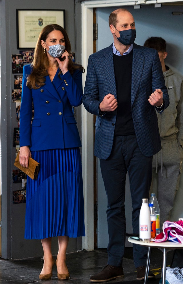 劍橋公爵夫人星期一與威廉王子開始短暫的蘇格蘭之行,兩人除了參觀了20年前相遇相愛的聖安德魯斯大學之外,還到訪北拉納克郡的 The Turning Point 社會中心,幫助被社會排斥風險的人再度融入社會的機構。凱特便選擇了Zara 的 Klein 藍色西裝套裝,搭配同色調的百摺過膝長裙完成優雅王室造型。其實這件Zara 外套早在今年5月,為了慶祝國際助產士日,與烏干達社區助產士護士 Harriet Nayiga 進行視像訪問。當時看身穿黑色上衣和褲子,打造出幹練而獨立的模樣。