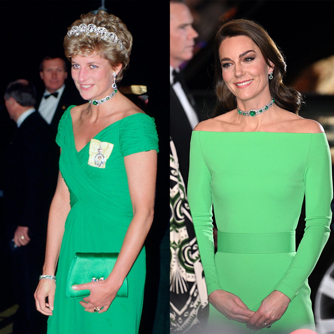 2022年12月在波士頓舉行的Earthshot Prize頒獎典禮上,凱特為她穿著的綠色Solace London禮服搭配了一個祖母綠的吊墜,這個吊墜以前曾在戴安娜身上出現。這條項鍊最早是由瑪麗女王在1911年的德里杜爾巴上佩戴的,這標誌著國王喬治五世和瑪麗宣布成為印度皇帝和皇后,同樣由皇家珠寶商Garrard委託製作的,使用的是印度夫人贈送的綠寶石。戴安娜在1985年的澳洲之行中戴著這一藝術裝飾風格的首飾,後來在1993年在多徹斯特酒店舉行的國宴上再次戴著它(也是搭配綠色禮服,這次是Catherine Walker的作品)。