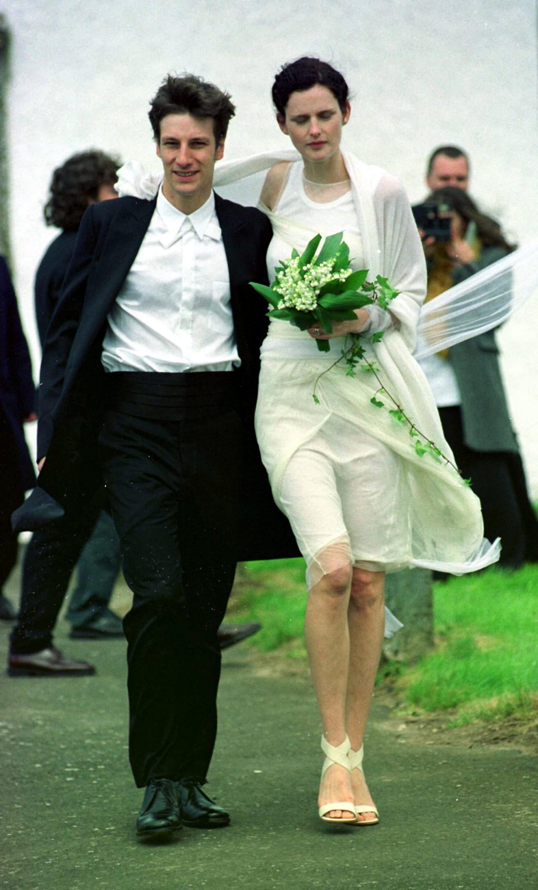 Aristocratic supermodel Stella Tennant with French-born David Lasnet following the wedding in the small parish church of Oxnam in the Scottish Borders. (Photo by David Cheskin - PA Images/PA Images via Getty Images)