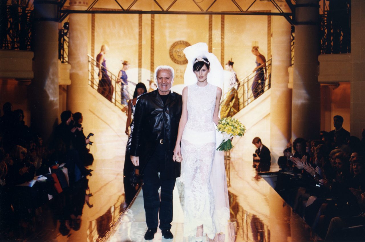 Gianni Versace 與Stella Tennant 在Versace 1996春夏 Haute Couture