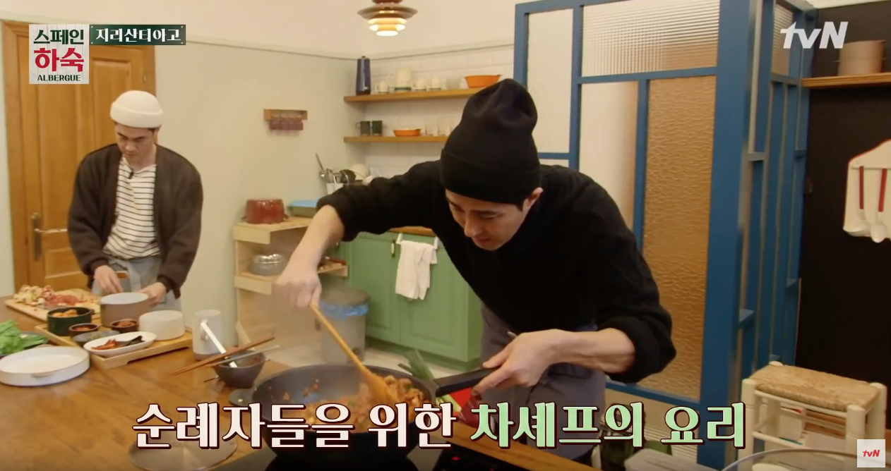 演員車勝元當年出演羅䁐錫PD製作的綜藝節目《一日三餐》時,向大家展示了其烹飪技能。今年出演同樣由羅PD製作的溫暖、自癒系綜藝節目《西班牙寄宿》,更是遠赴西班牙為踏上朝聖之路的人提供熱飯熱菜。無論是韓國還是外國朝聖者,都紛紛讚好其廚藝。再次相遇,一同出演《西班牙寄宿》的演員柳海真更說自己「有口福」。在廚房裡的車勝元穿上廚師福形象專業溫暖,而每天買菜時的他卻和裴正南換上帥氣服裝,將買菜之路變成時裝展天橋。
