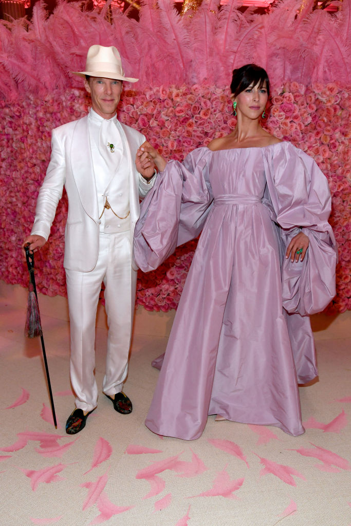 所有人的目光都集中在演員Eddie Redmayne和妻子Hannah Bagwashe身上,他們穿著相配的服裝搶盡了風頭,他們演繹倫敦設計師 Steve O Smith為其打造極具戲劇性的禮服,在擺姿勢拍照時,這兩套服裝幾乎融為一體,作為對「The Garden of Time」主題的頌歌。