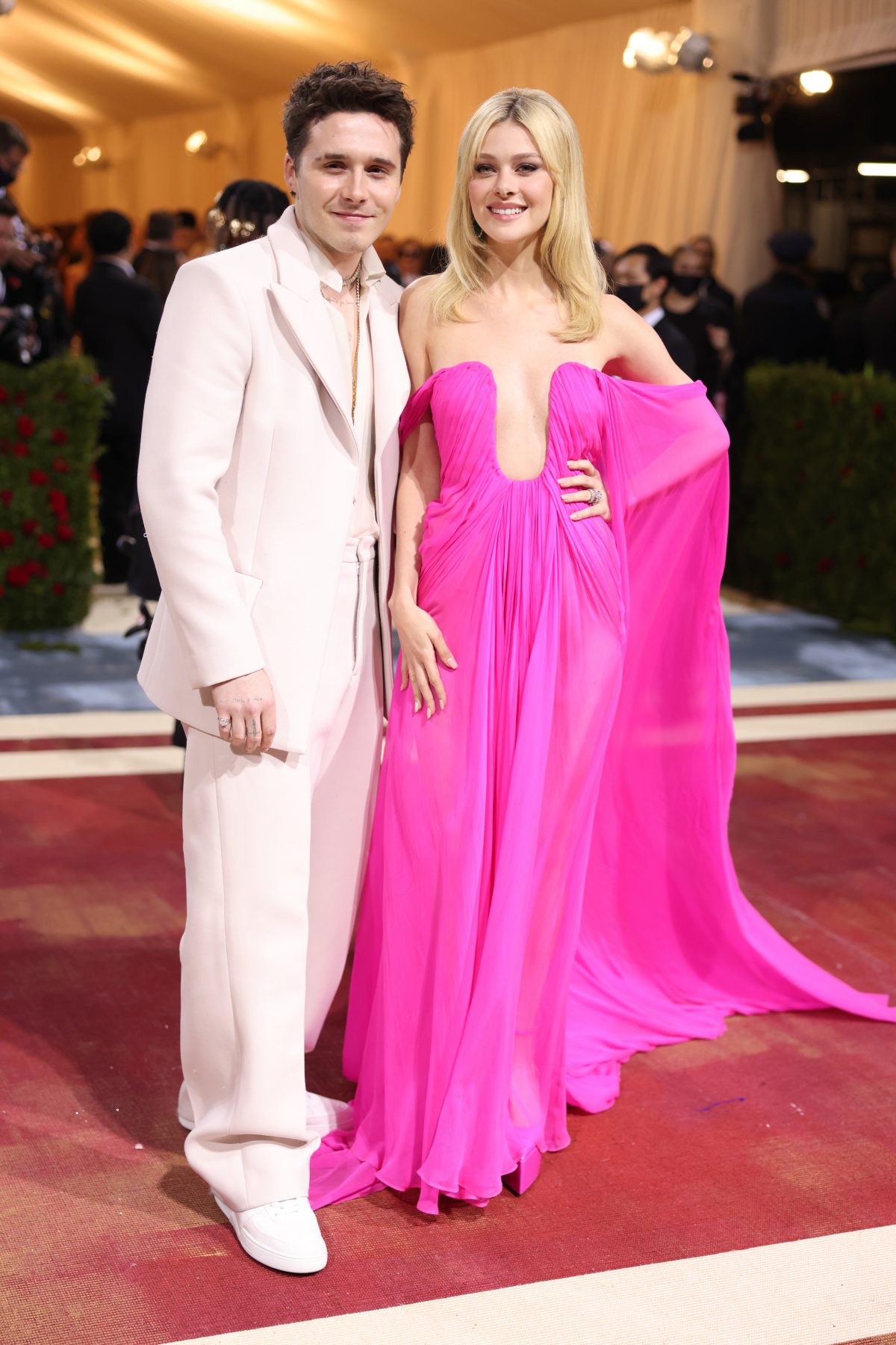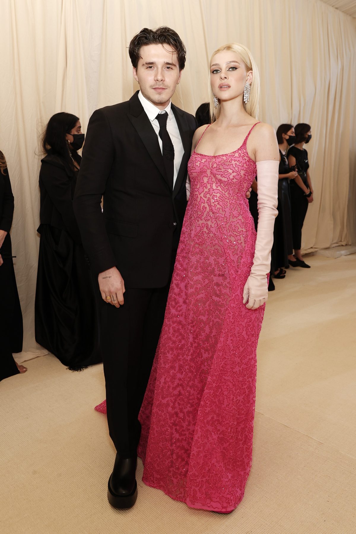 Brooklyn Beckham 與 Nicola Peltz 在2020年7月宣布訂婚後,兩人在2021年Met Gala雙雙穿上 Valentino 訂製禮服亮相 Met Gala 紅地毯。Nicola Peltz  身穿粉色長裙搭配手套, Brooklyn Beckham 則穿上黑色燕尾服襯托妻子的美麗動人。