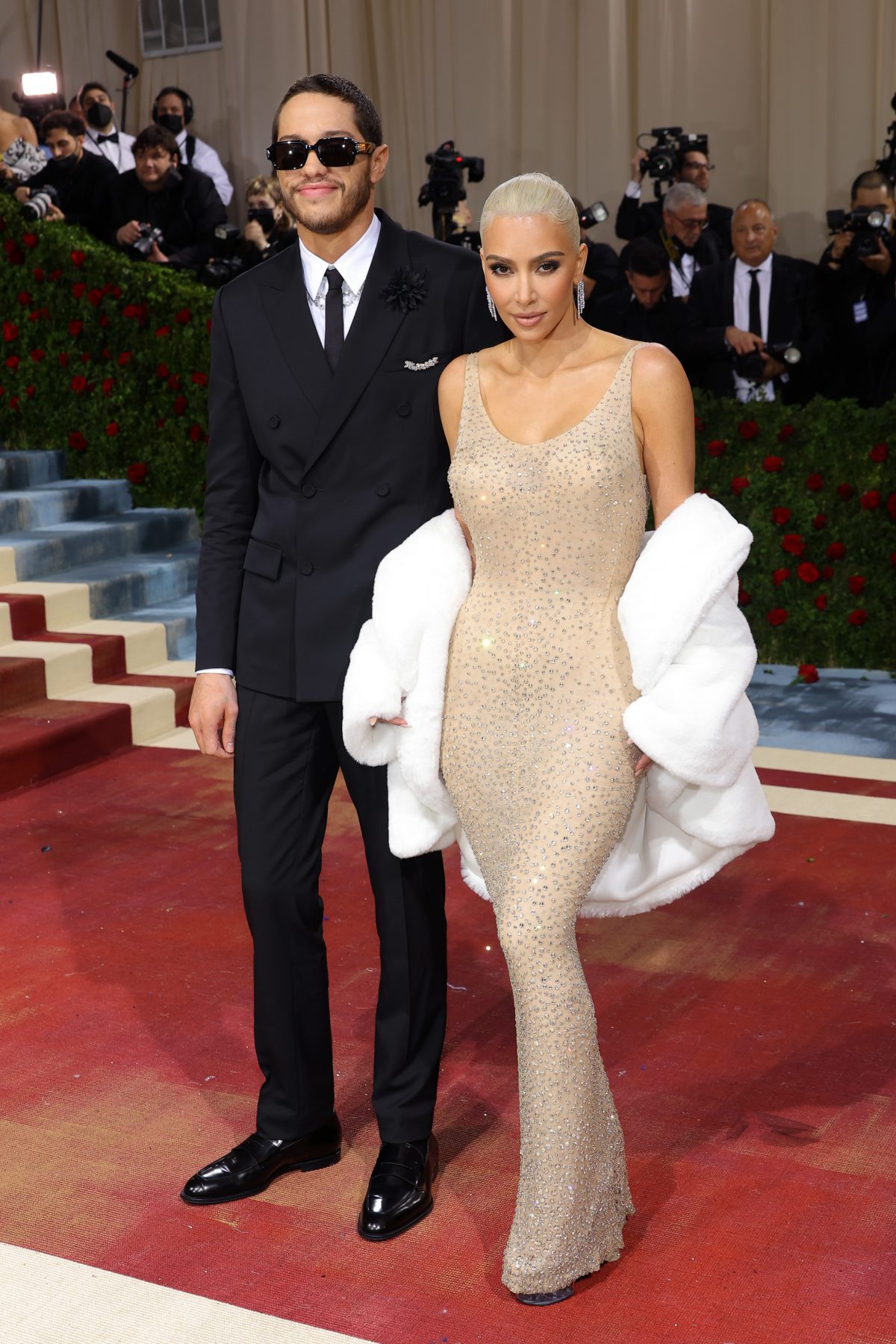 Kim Kardashian 攜當時男友 Pete Davidson 一同出席2022年 Met Gala 紅地毯。全場的亮點都聚焦在 Kim Kardashian 身穿的香檳金色連身裙,是性感女神 Marilyn Monroe  在1962年向時任美國總統 Kennedy 獻唱生日快樂歌時穿的同一件連身裙。