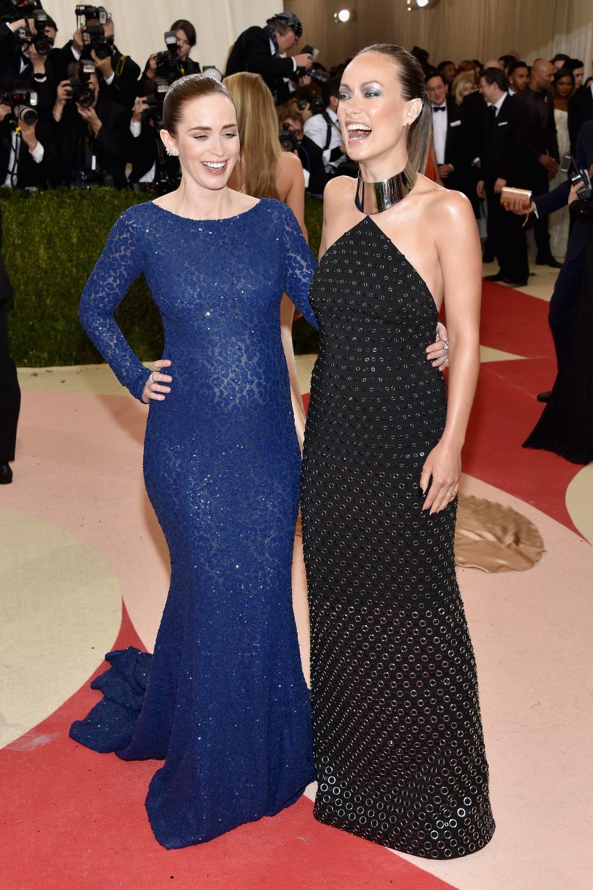 NEW YORK, NY - MAY 02: Emily Blunt (L) and Olivia Wilde attend the "Manus x Machina: Fashion In An Age Of Technology" Costume Institute Gala at Metropolitan Museum of Art on May 2, 2016 in New York City. (Photo by John Shearer/Getty Images)