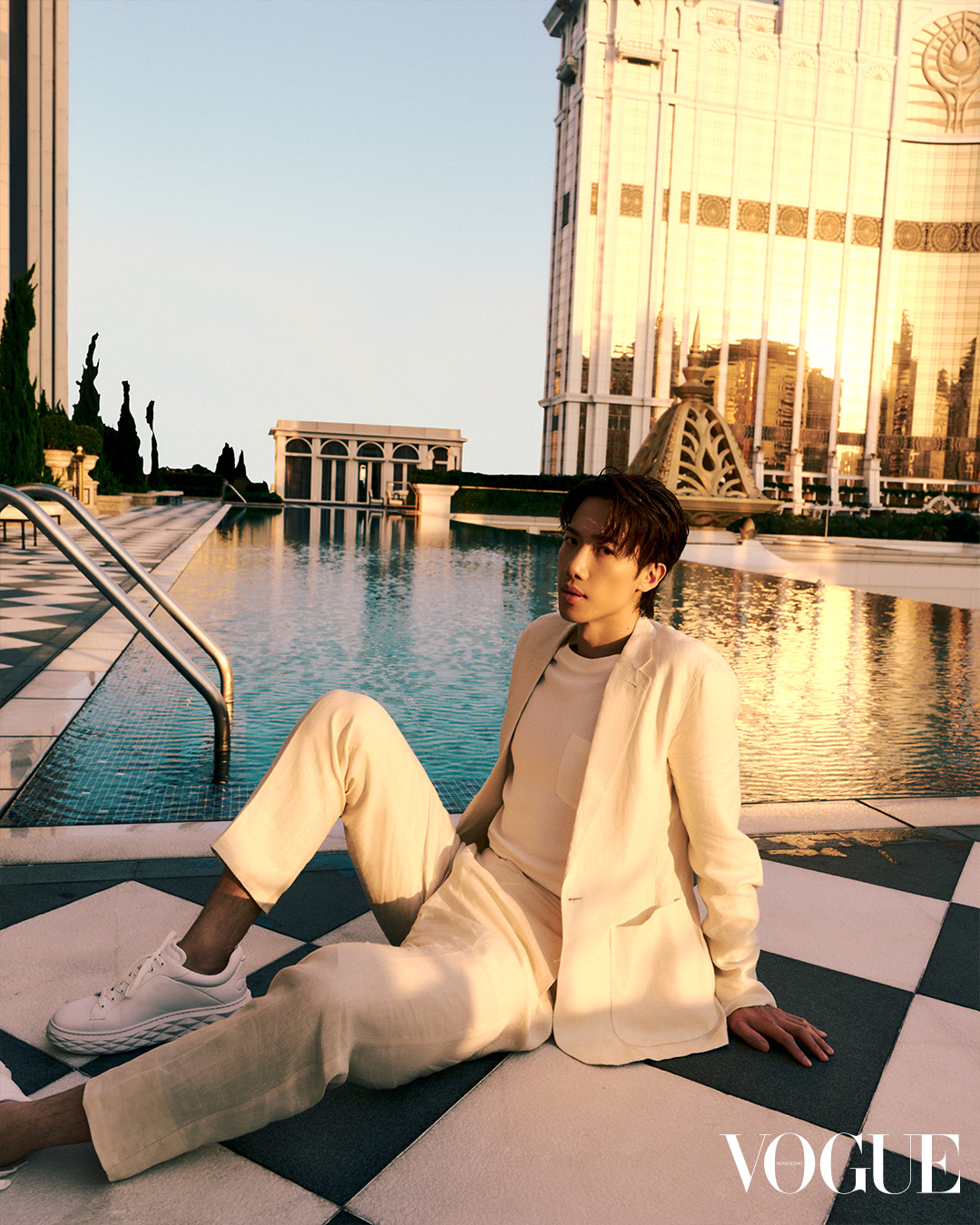 JER LAU:這次來到澳門酒店的泳池別墅拍攝,椰林樹影的環境,加上有游泳池,以及其他裝飾,感覺如同置身海外度假,非常悠閒。雖然拍攝的時候正值太陽比較猛烈的時候,但因為整個 環境非常舒適,非常順利地完成工作。