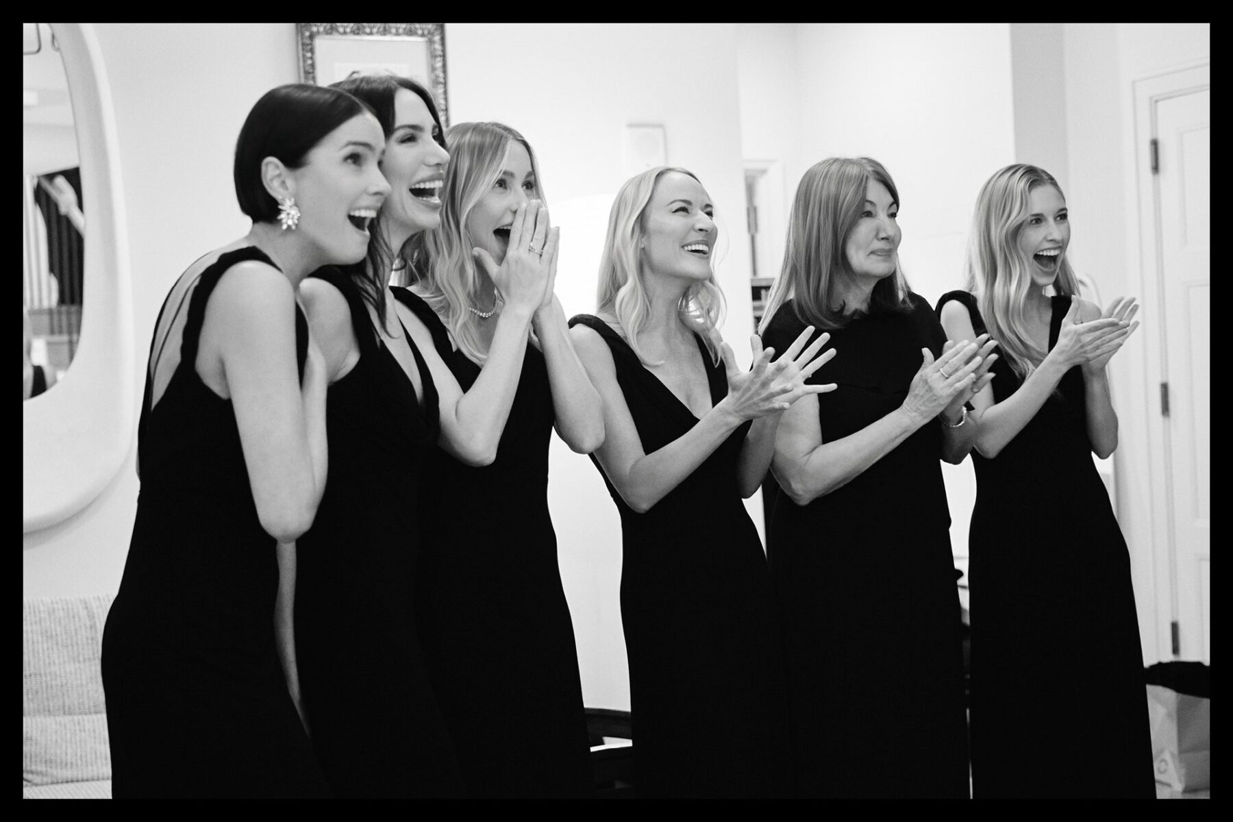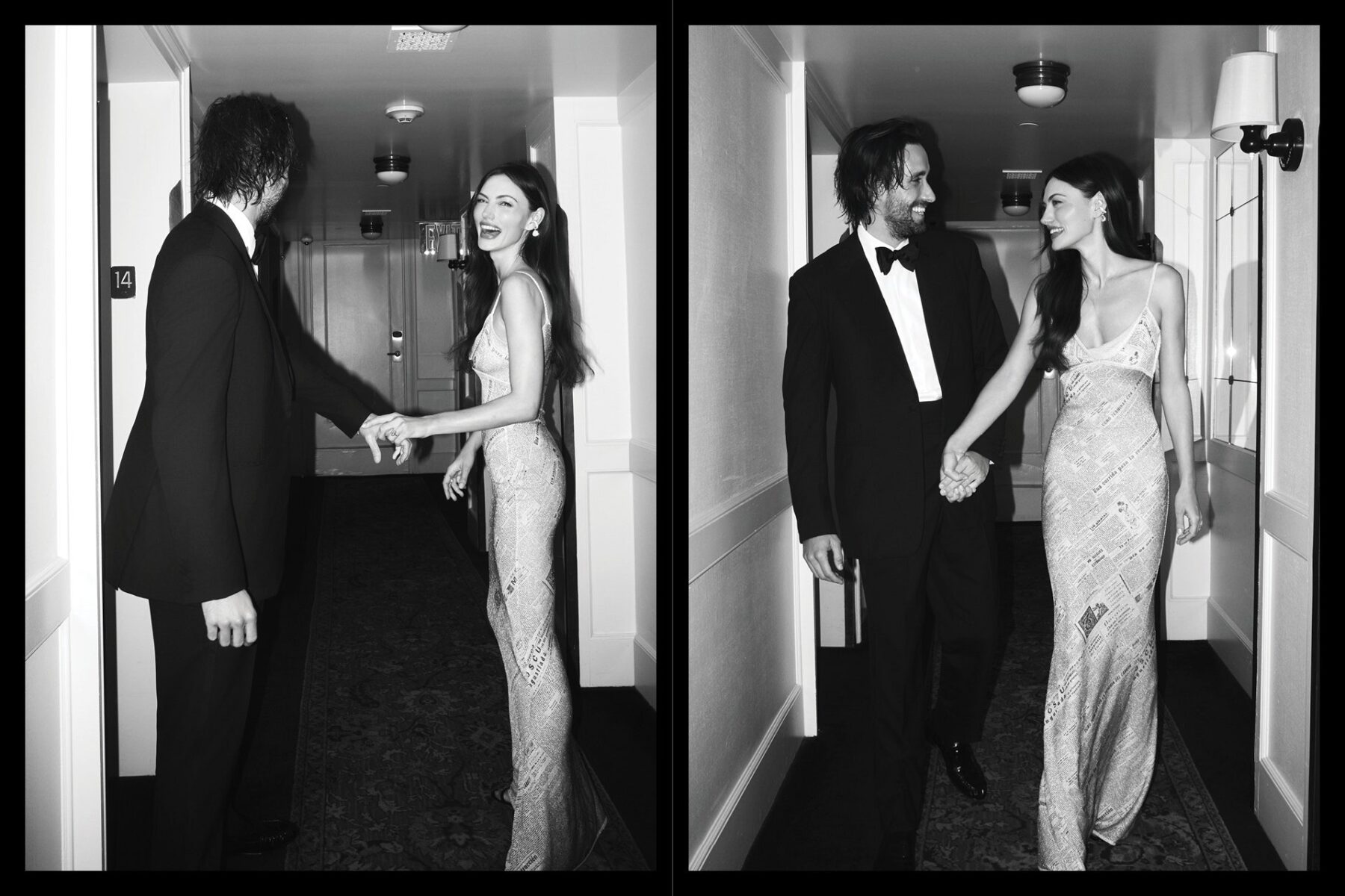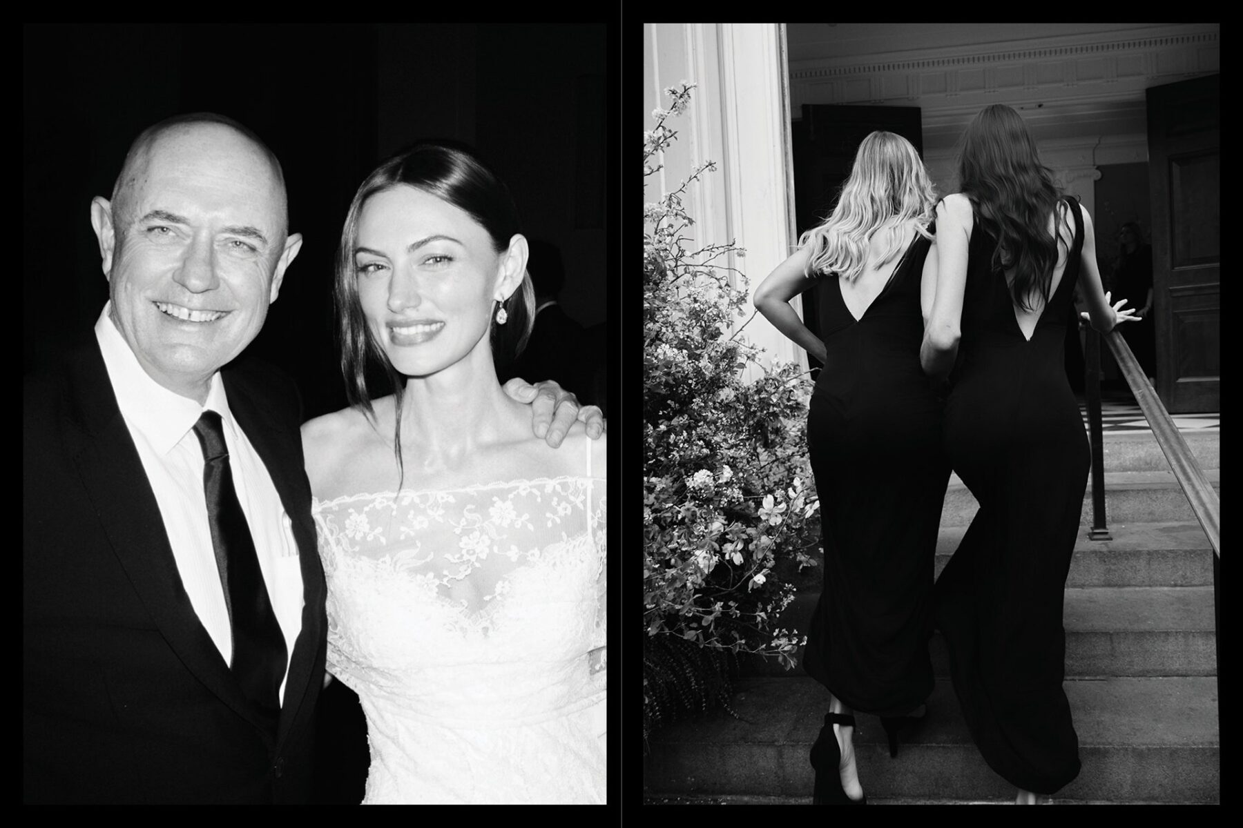 婚宴進行數小時後,Phoebe換上Magda Butrym特別訂製的亮片禮服,這件專為午夜舞會設計的華服令她盡情搖曳。新娘笑稱,對丈夫Bernard保密所有造型恐怕是籌備婚禮最困難的部分。「我完全無法停止談論這些禮服。」她說道,「婚前幾週每次小酌時,我都得提醒自己:『今晚千萬別讓Bernie看到婚紗照片』。」