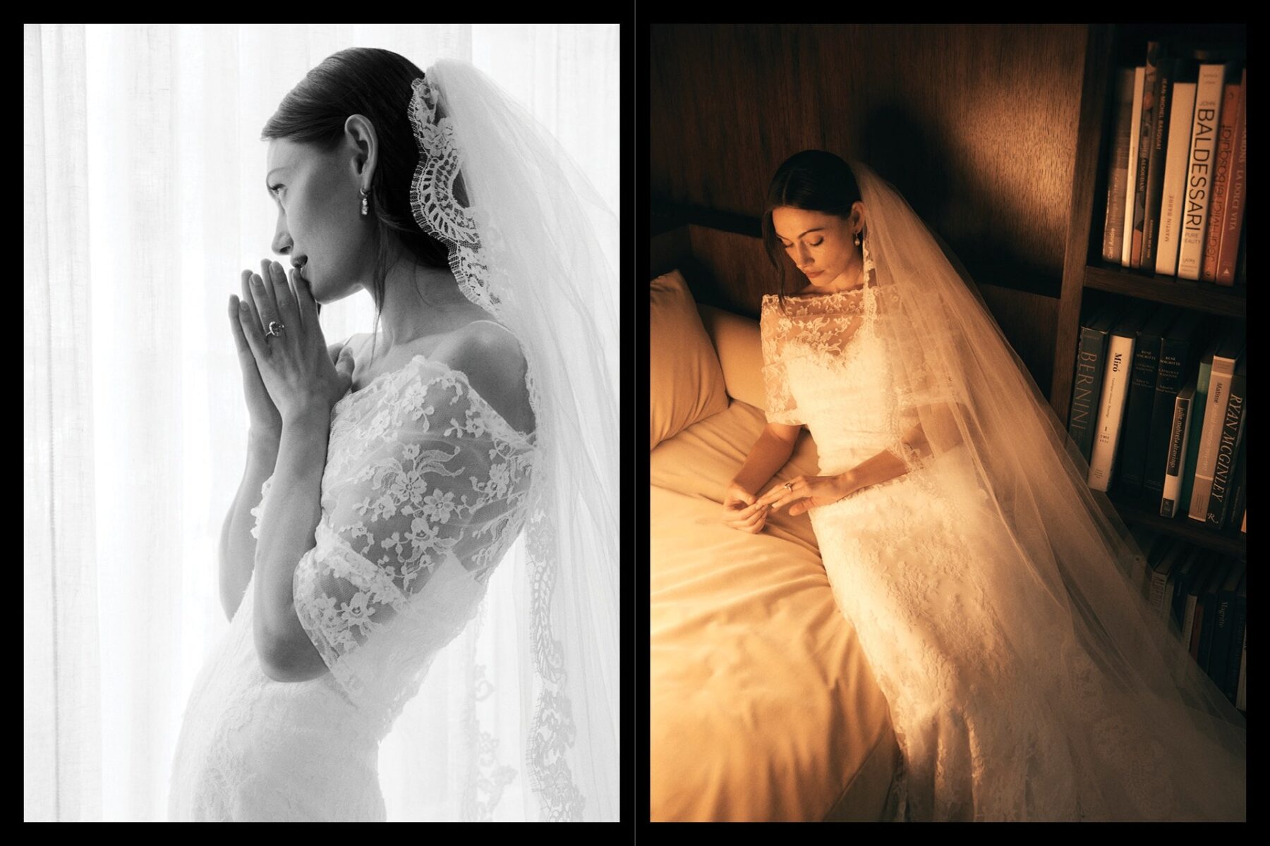 步入婚禮殿堂時,Phoebe選擇與合作十年的Chanel聯手打造主婚紗。她分享這襲喱士襯裙拖地婚紗的構想非常明確:搭配無肩帶薄紗罩衫,並飾以精緻喱士刺繡。「我一直夢想在婚禮當天穿上Chanel。」她感嘆道,「能穿上量身訂製的Chanel婚紗至今仍像夢境。衷心感謝品牌團隊、工坊,以及我的造型師Emma Jade Morrison,他們不眠不休地實現了我的夢想婚紗。」婚紗搭配Jessica McCormack耳環與儀式上交換的婚戒。