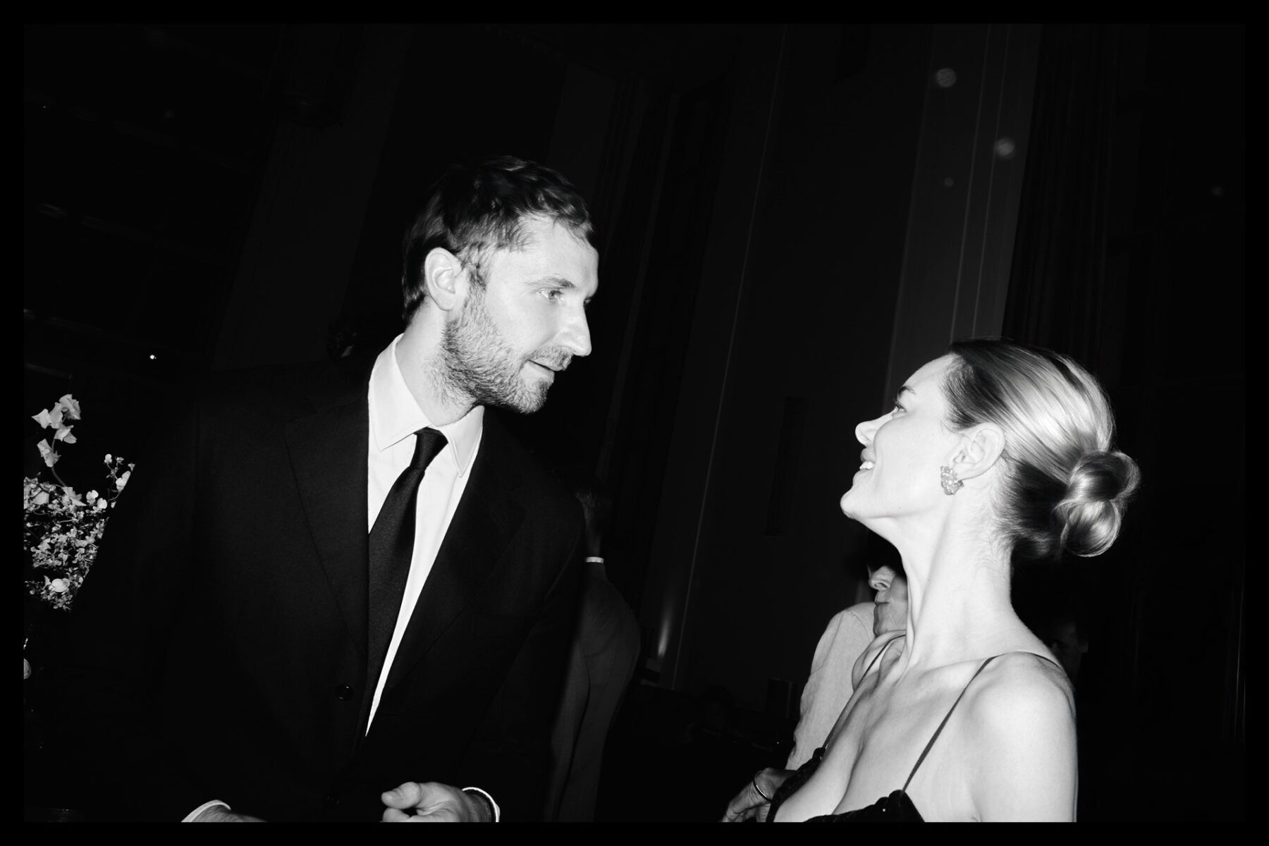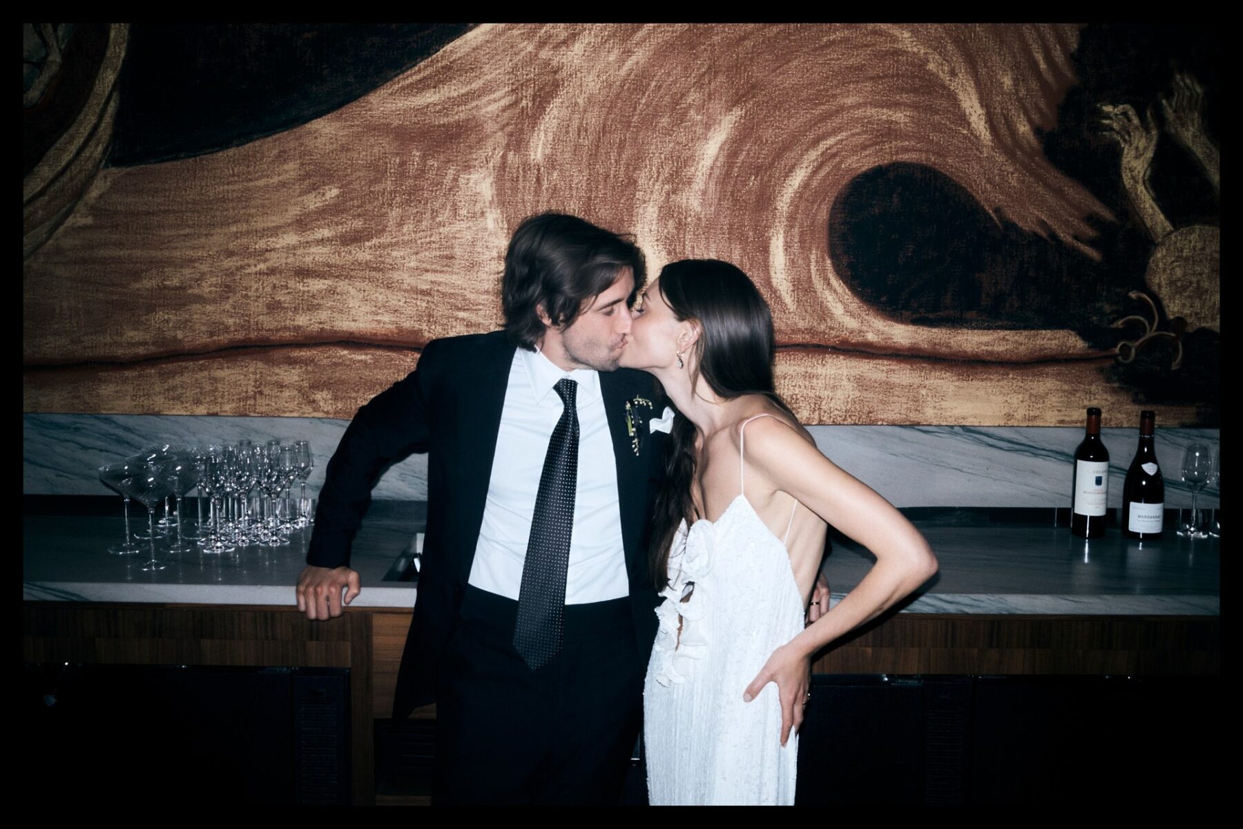 當新人正式結為夫妻後,慶祝派對移師至下城的 Eleven Madison Park 餐廳。賓客們在此享用婚宴晚膳,壓軸登場的是巴黎甜點師 Paris Starn 打造的兩座天鵝造型巨型蛋糕。隨後的舞會環節將夜晚推向高潮——這對新婚夫婦與賓客們盡情熱舞至破曉時分。「最瘋狂的時刻是 2manydjs/Soulwax 打碟時,大家把鞋子全踢到地上堆成小山。」新娘笑着回憶,「這簡直是歐洲與澳洲文化的完美混搭!」狂歡延續至 Obvio 酒吧的會後派對,最後大家相約週日早晨在 Bar Oliver 共進早午餐,為這場夢幻婚禮畫下句點。