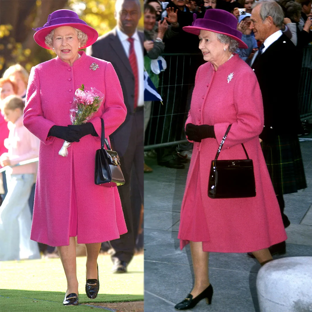 英女王多次穿著這件紫紅色大衣裙和紫色帽子,包括在2003年於溫莎大公園的活動,以及一年後在蘇格蘭議會的開幕式上均以同樣服裝亮相。