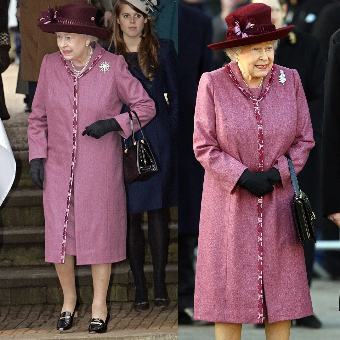 在2006年Sandringham 的聖誕節教堂儀式上, Angela Kelly 設計的這件淡紫色大衣首次亮相後,英女王多次重新穿上它,包括兩年後在倫敦的一次訂婚。