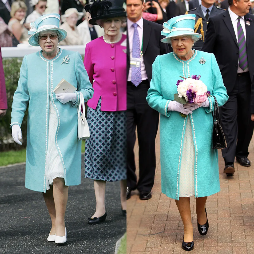 英女王在許多場合都穿著這件綠松石藍色大衣和帽子,包括2006年的雅士谷賽馬會和2010年的Wimbledon。