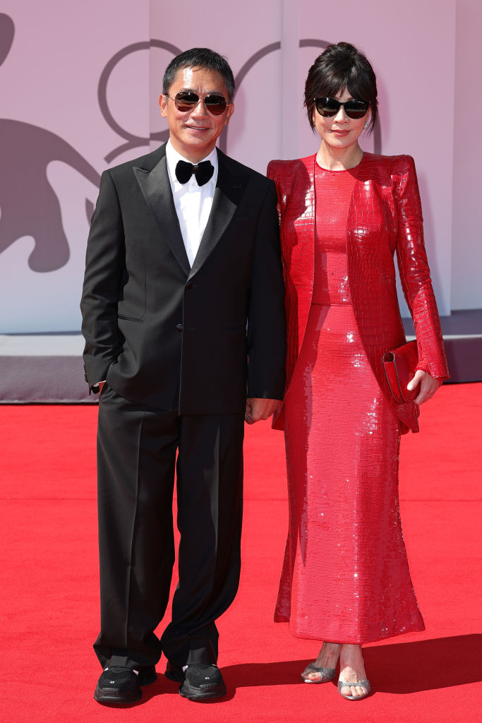 VENICE, ITALY - SEPTEMBER 02: Tony Leung Chiu-Wai and Carina Lau Kar-ling attend the red carpet for the Golden Lion For Lifetime Achievement Award Ceremony at the 80th Venice International Film Festival on September 02, 2023 in Venice, Italy. (Photo by Andreas Rentz/Getty Images)