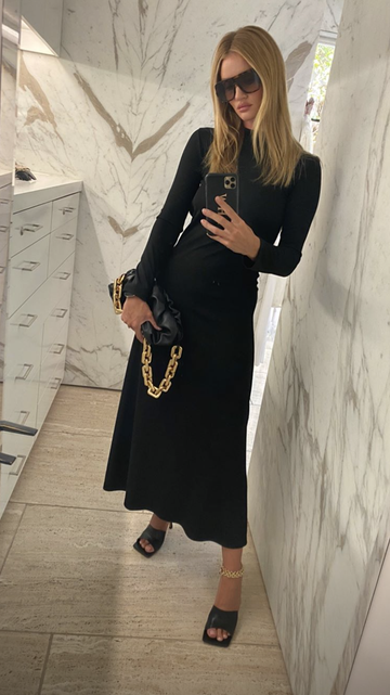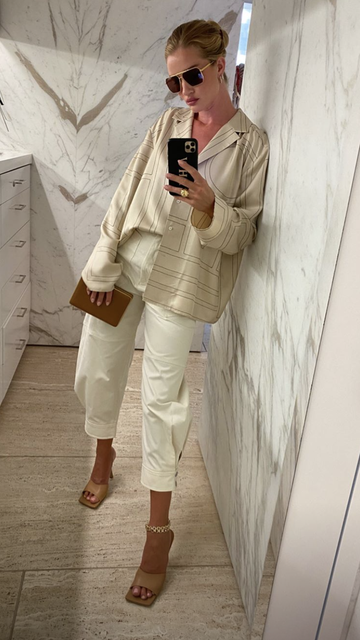 這是 Rosie Huntington-Whiteley 對着鏡子自拍及穿上風衣的季節,她已經在Instagram 分享另一輪 #OOTD。由她珍愛的 Intrecciato編織手拿袋、枕形Pouches、網眼穆勒鞋、粗大鍊條包等,再到 Celine 太陽眼鏡,Laura Lombardi腳鍊也有出現。其他品牌如 The Row 靴子,目前還沒有出現,相信不久後她就會穿上。