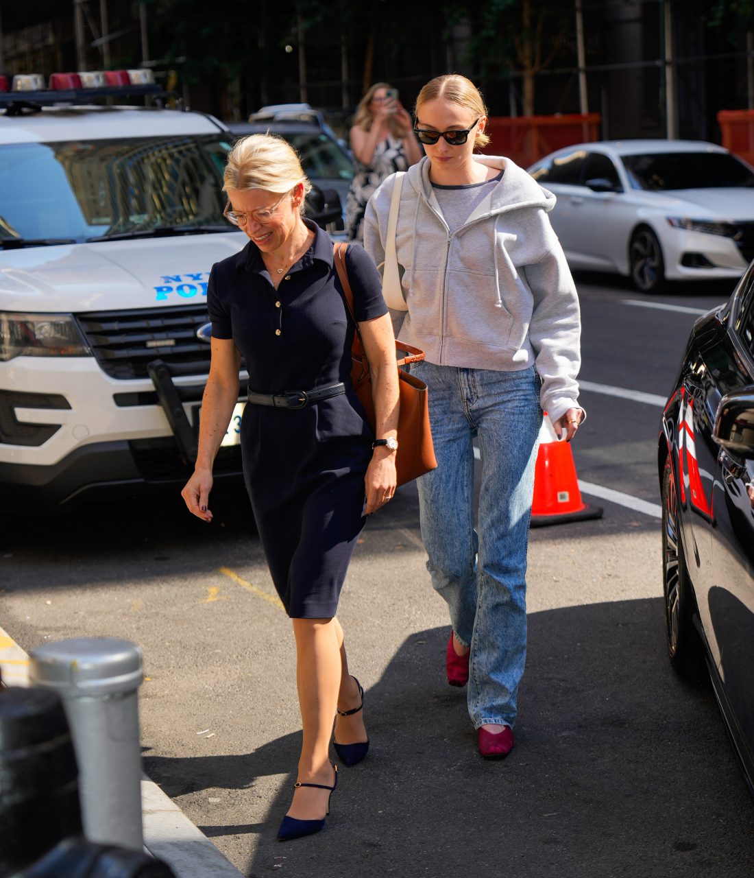 NEW YORK, NEW YORK - OCTOBER 03: Sophie Turner (R) is seen on October 03, 2023 in New York City. (Photo by Gotham/GC Images)