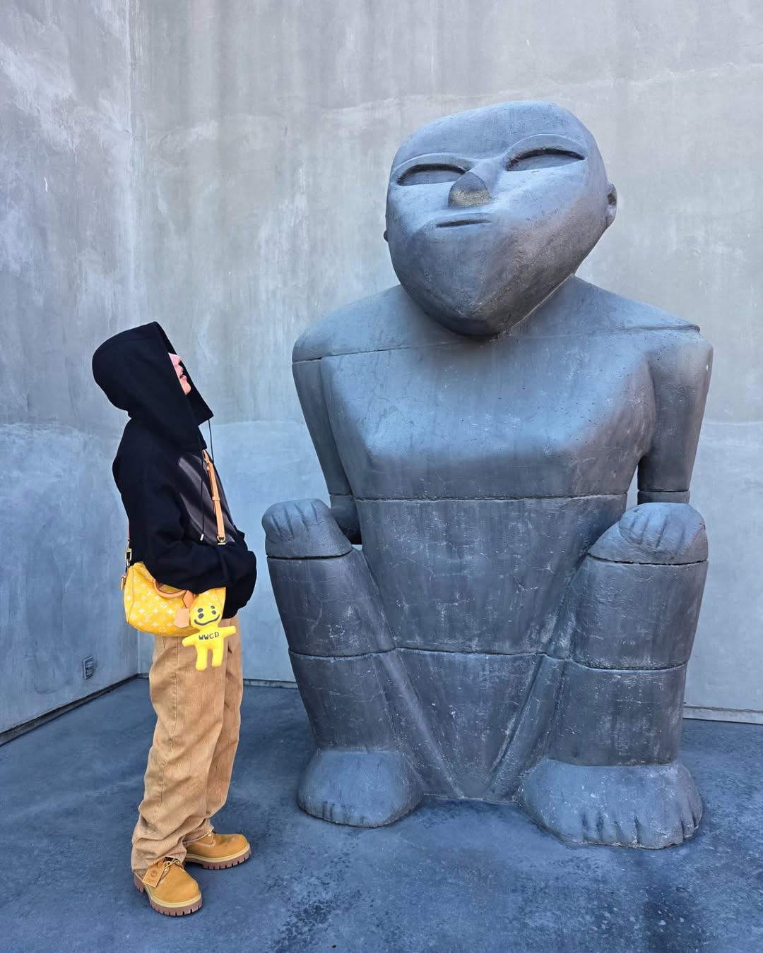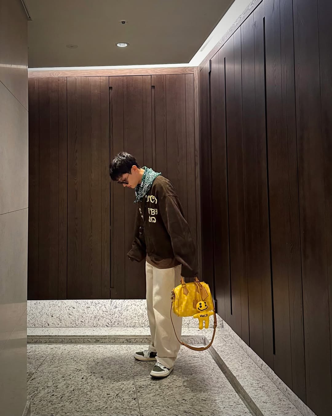 J-hope透過毛衣、衛衣等寬鬆服飾的搭配,以簡潔的配色和流暢的線條,彰顯出他的個性與品味。他在演繹寬鬆玫紅色衛衣時,會搭配Louis Vuitton藍色Monogram蓬鬆圍巾,增添保暖性的同時,還有造型層次感。